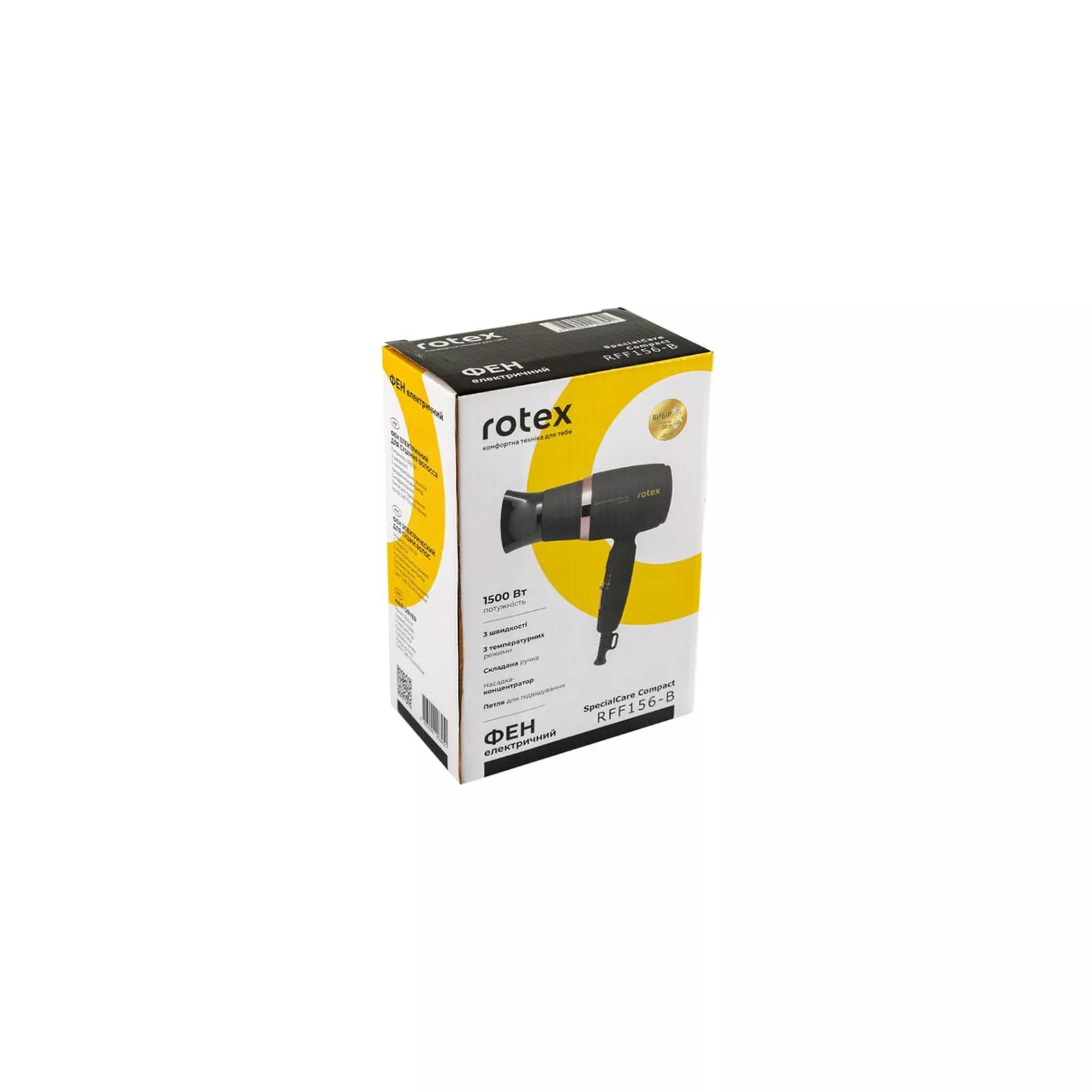 Фен ROTEX RFF156-B SpecialCare Compact — это идеальный компактный фен для путешествий и команд. складной ручкой. Для своих компактных размеров он имеет достаточно высокую мощность — 1500 Вт, поэтому фен быстро сушит волосы без перегрева. укладка и тип волос. Петелька для подвешивания и насадка-концентратор создают дополнительное удобство при использовании.