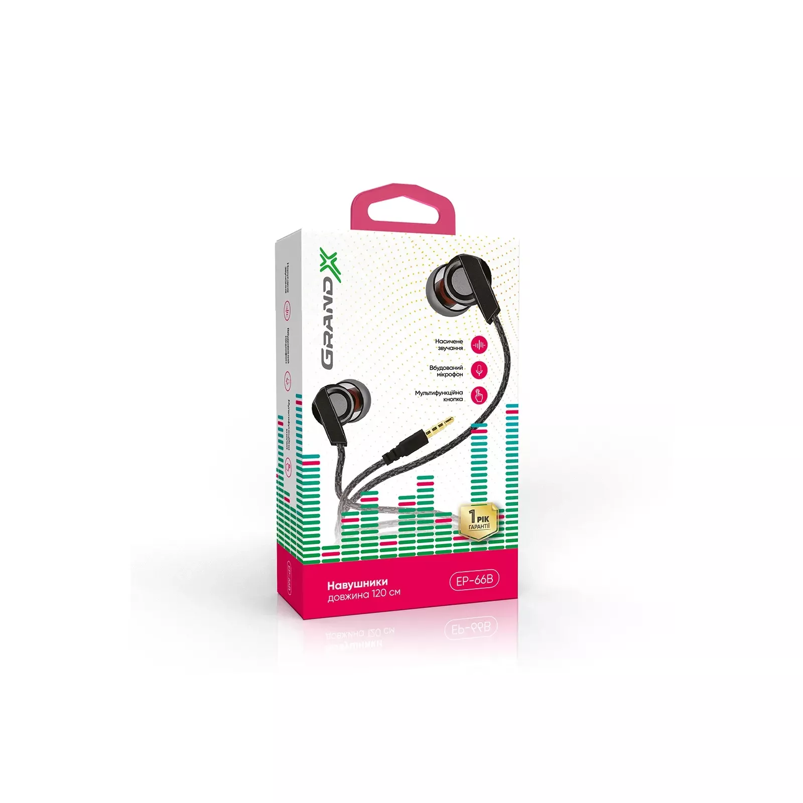 Наушники Grand- X EP-66 сочетает в себе хорошее качество звучания, отличную портативность и доступную цену. Подключение с помощью стандартного Jack 3.5 мм позволяет использовать наушники не только со смартфоном или ПК, но и с любым другим устройством с соответствующим портом. А однокнопочный пульт управления позволяет не только управлять воспроизведением, но и отвечать на входящие звонки. Наушники обеспечивают удобную и надежную фиксацию в ухе даже при занятии спортом, но при этом почти не чувствуются и не создают никакого дискомфорта.
