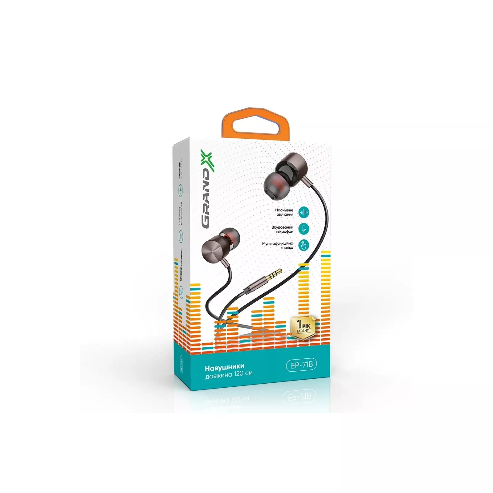 Наушники Grand- X EP-71 сочетает в себе хорошее качество звучания, отличную портативность и доступную цену. Подключение с помощью стандартного Jack 3.5 мм позволяет использовать наушники не только со смартфоном или ПК, но и с любым другим устройством с соответствующим портом. А однокнопочный пульт управления позволяет не только управлять воспроизведением, но и отвечать на входящие звонки. Наушники обеспечивают удобную и надежную фиксацию в ухе даже при занятии спортом, но при этом почти не чувствуются и не создают никакого дискомфорта.