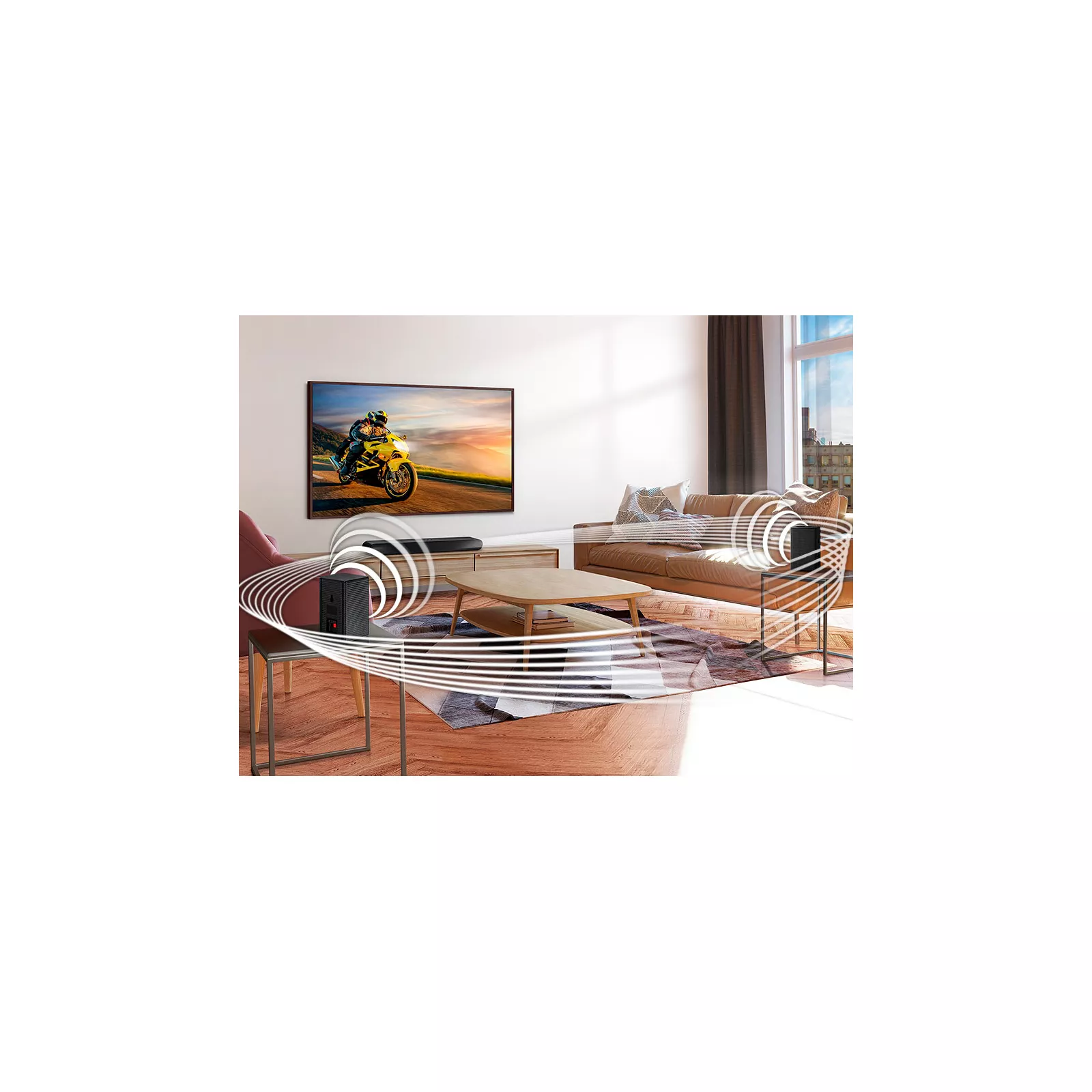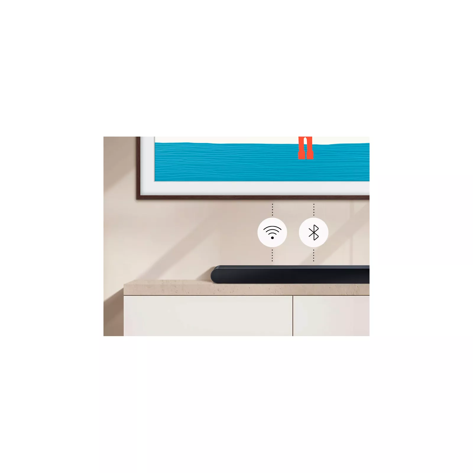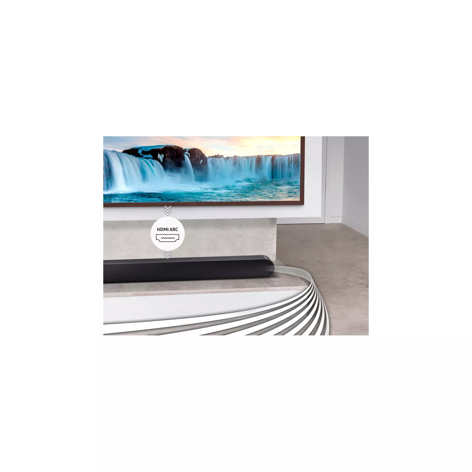Проволока от саундбара к телевизору портит ваш интерьер? Просто используйте Wi-Fi или Bluetooth для беспроводного подключения саундбара к телевизору Samsung и наслаждайтесь звуком как в кинотеатре.