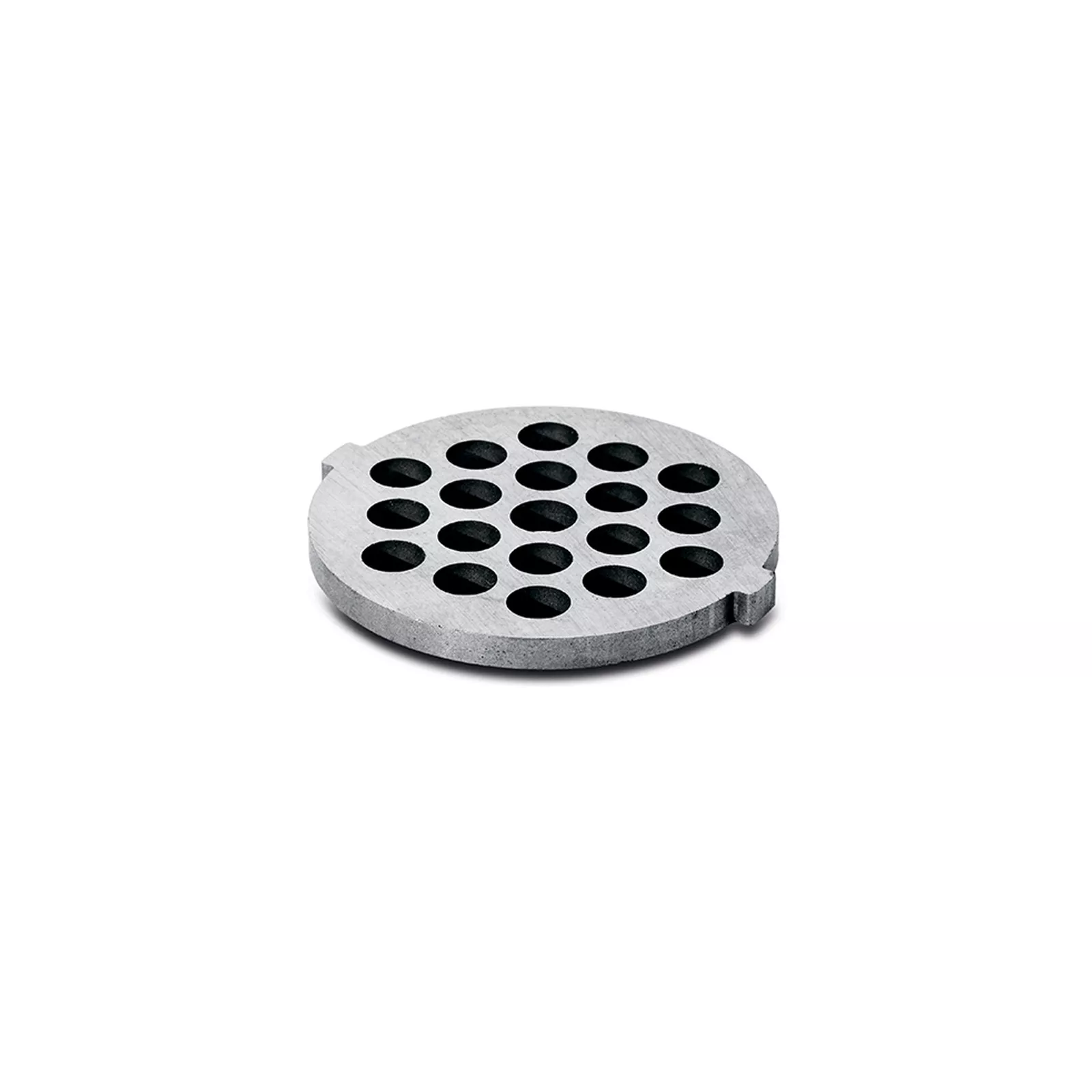 Два сита с разными отверстиями и двусторонний чем Наша мясорубка оснащена укомплектована решеткой с разным диаметром отверстий, которые позволяют регулировать текстуру мяса в соответствии с вашими индивидуальными предпочтениями. Многофункциональные сита со средним размером отверстий подходят для многих кулинарных рецептов. Готовя сочные домашние бургеры, выбирайте большие сытые. В набор также входит двухсторонний нож, который очень прост в использовании благодаря уникальному дизайну. Независимо от способа установки он всегда будет работать должным образом.