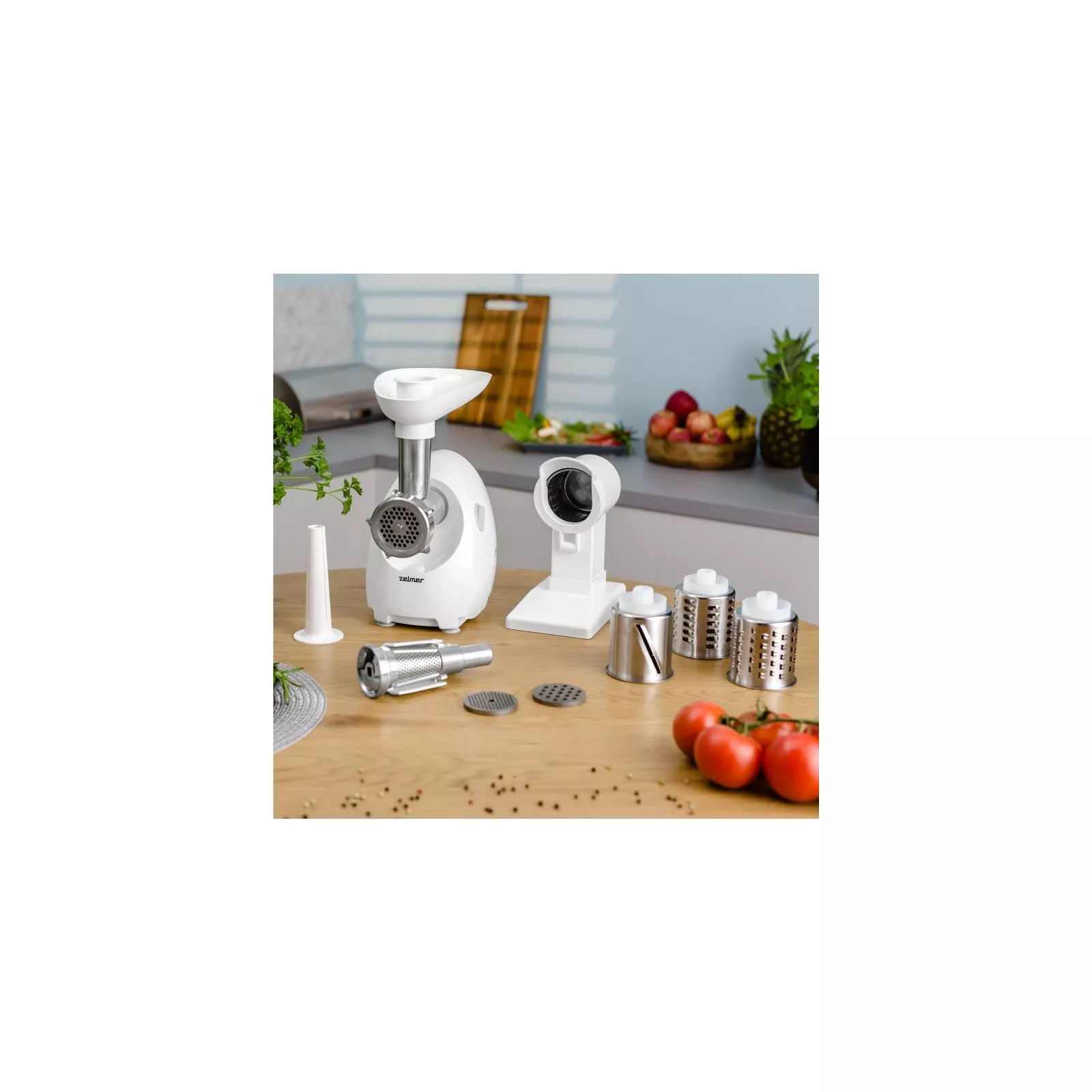 Так мясорубку можно использовать для переработки мясных продуктов, для выдавливание сока из овощей и фруктов, а терка шнека поможет максимально и в полном объеме быстро натереть или нарезать большое количество овощей или фруктов на салат. Дополнительно в комплекте имеется насадка для формирования колбас.