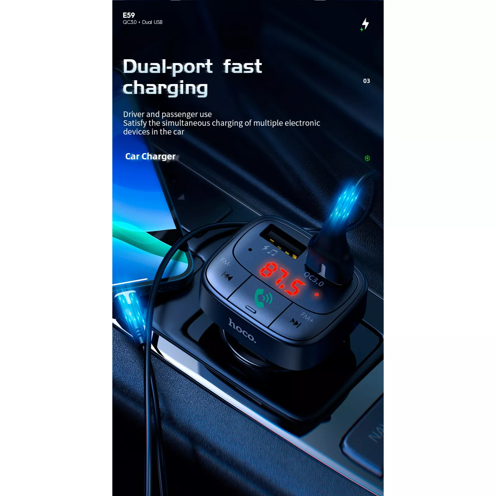 Автомобильное зарядное устройство для Hoco E59 – это универсальное быстрая и эффективная автомобильная зарядка, которая также позволяет проигрывать любимые треки с вашего телефона, планшета, USB-флешки или карты памяти. Просто вставьте зарядное устройство в гнездо прикуривателя, настройте вашу автомагнитолу и FM трансмиттер на одну частоту, и наслаждайтесь любимыми треками в качественном объемном звуке акустической системы автомобиля.
