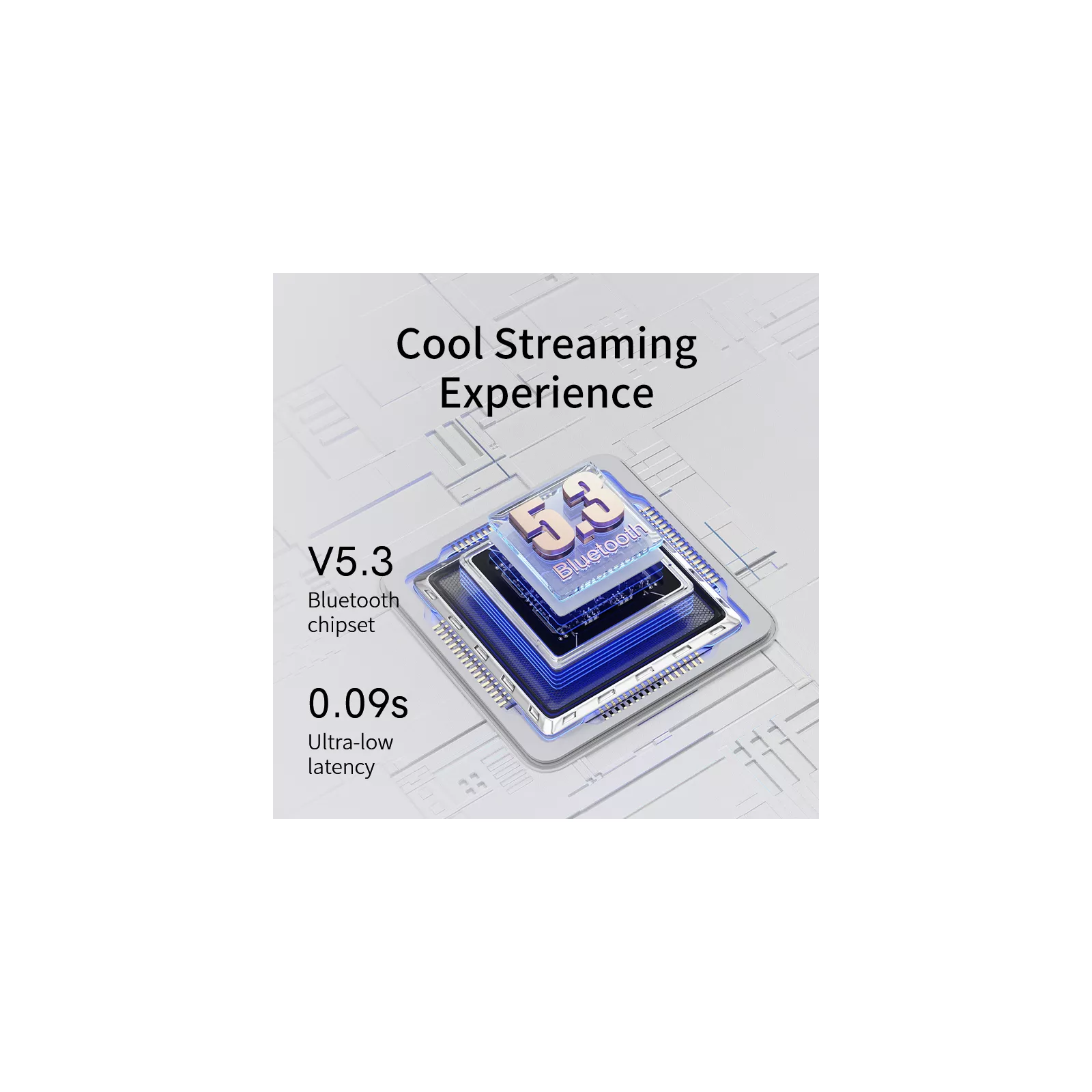 Благодаря передовому чипу и поддержке Bluetooth 5.3 задержка звука в режиме Low Latency снизилась до 0.068 секунд. Поэтому обеспечивается сверхточная синхронизация видео и аудио, и звук в наушниках идеально соответствует изображению на экране. Теперь любимые фильмы и динамические игры выглядят максимально и в полном объеме реалистично.