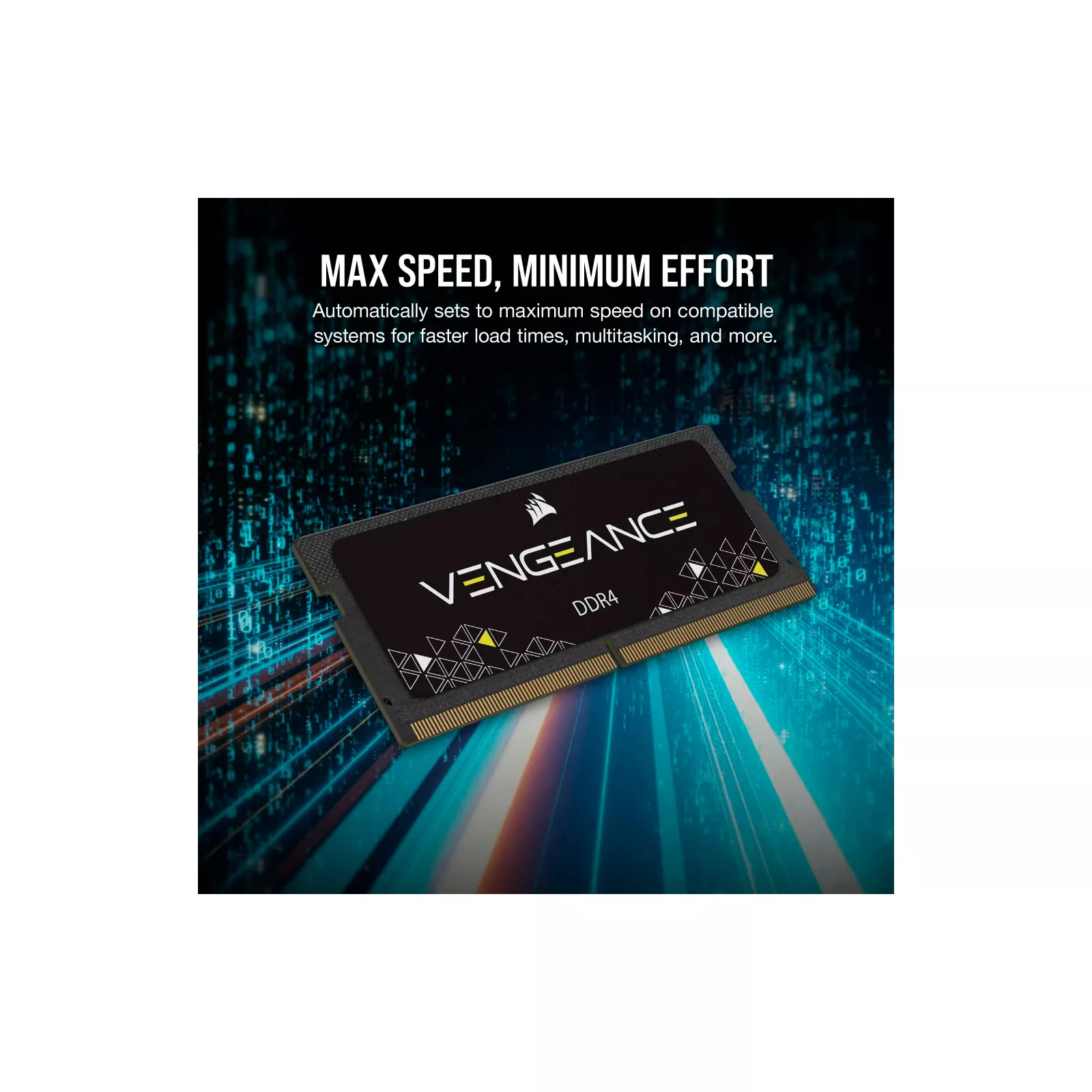 Автоматическая максимальная производительностьБольшинство ноутбуков и портативных компьютеров автоматически выбирают максимально и в полном объеме надежные настройки разгона для достижения наилучшей производительности и 100% стабильности. В большинстве случаев ручная настройка не требуется. Переход на оперативную память Vengeance Series DDR4 SODIMM - отличный способ мгновенно повысить скорость работы системы.