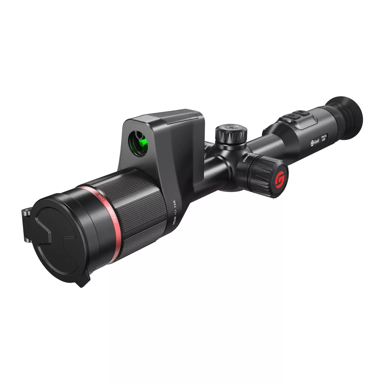 Тепловизор оснащен и укомплектован интегрированным лазерным дальномером с максимально и в полном объеме дальностью до 1500 метров. Это позволяет стрелке одновременно следить за мишенью и измерять дистанцию до нее. Мощный и качественный цифровой зум 8x эффективно использует разрешение матрицы, приближая важные детали без заметной потери качества. Встроенный Wi-Fi модуль и официальное приложение позволяют вживую транслировать тепловизионное изображение на подключенные внешние устройства. Управлять большинством основных функций возможно также дистанционно.