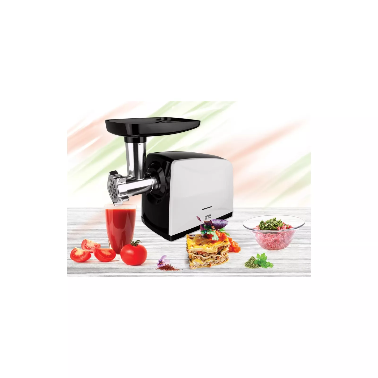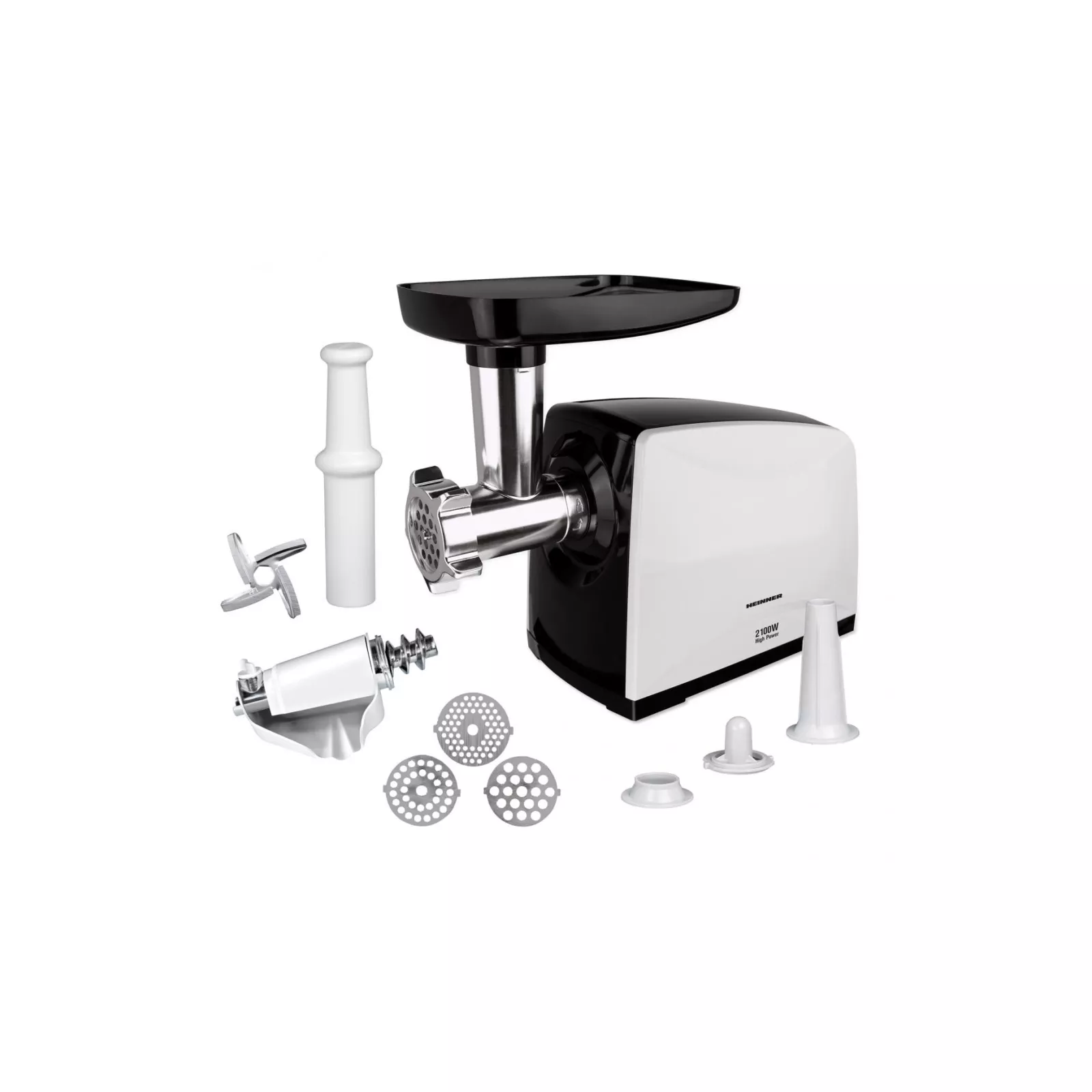 2100 Вт Когда вам нужно измельчить мясо для колбас, фрикаделек, кеббе, мускатного ореха или приготовить свежий томатный сок, мясорубка Heinner станет вашим надежным помощником. Она оснащена и укомплектована мощным двигателем мощностью 2100 Вт, что обеспечивает постоянную скорость измельчения без сбоев. Измельчайте быстро и легко одним нажатием кнопки.