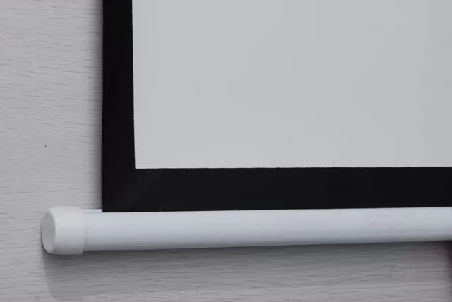 Современный проекционный экран выглядит как абсолютно белое полотно, которое удобно крепится под потолком. Его можно сворачивать и разворачивать по мере надобности. Достаточно потянуть экран скобу или крючок в нижней части корпуса.
