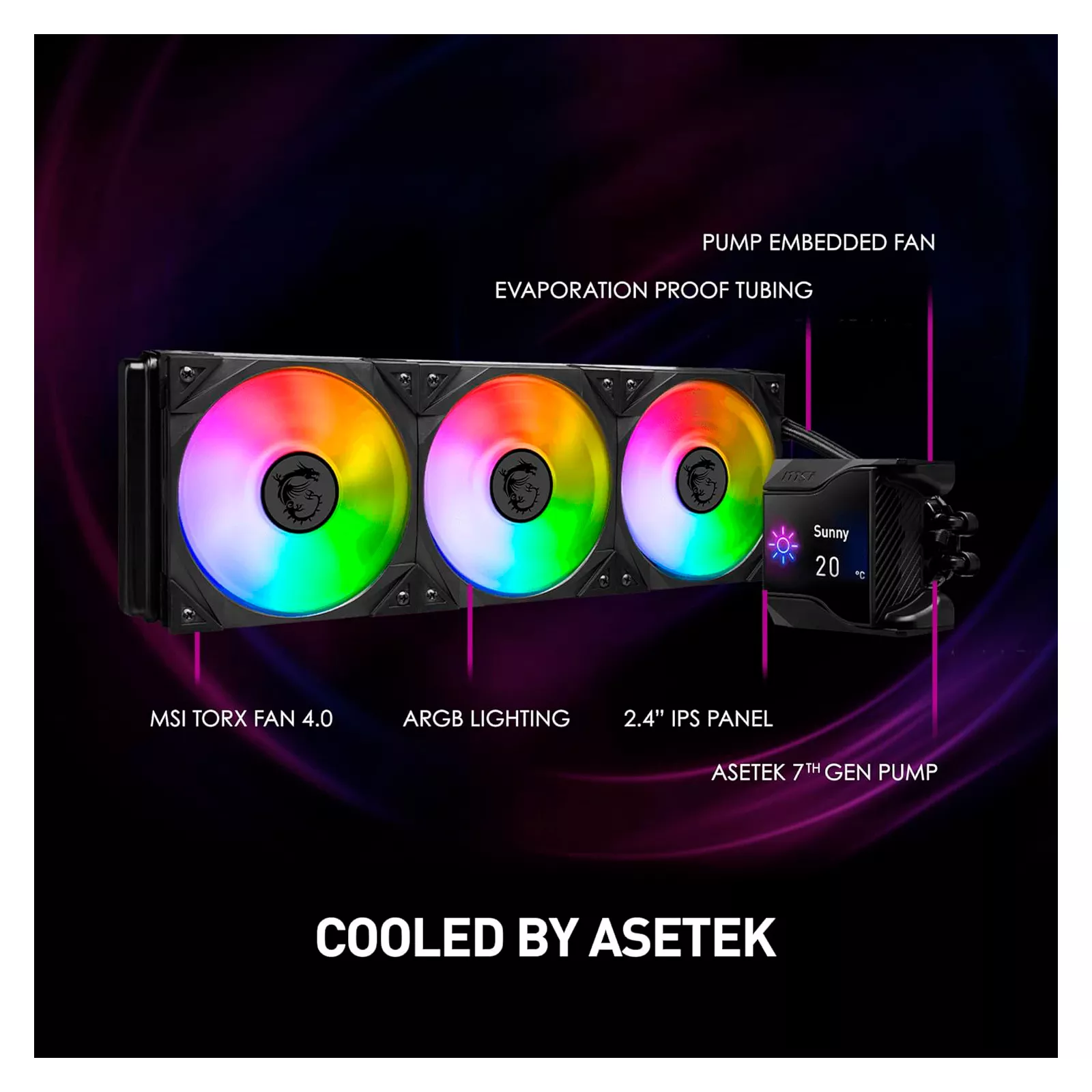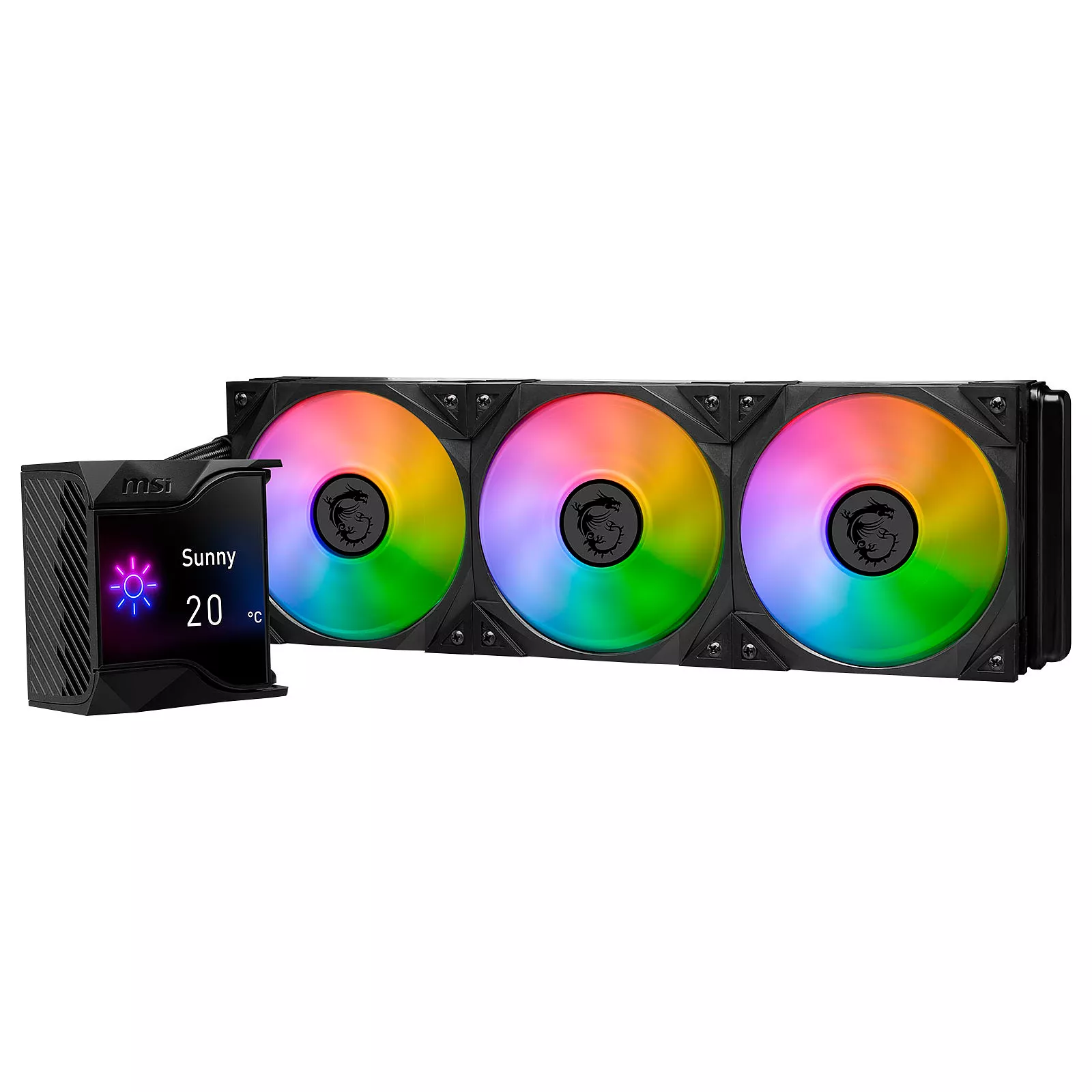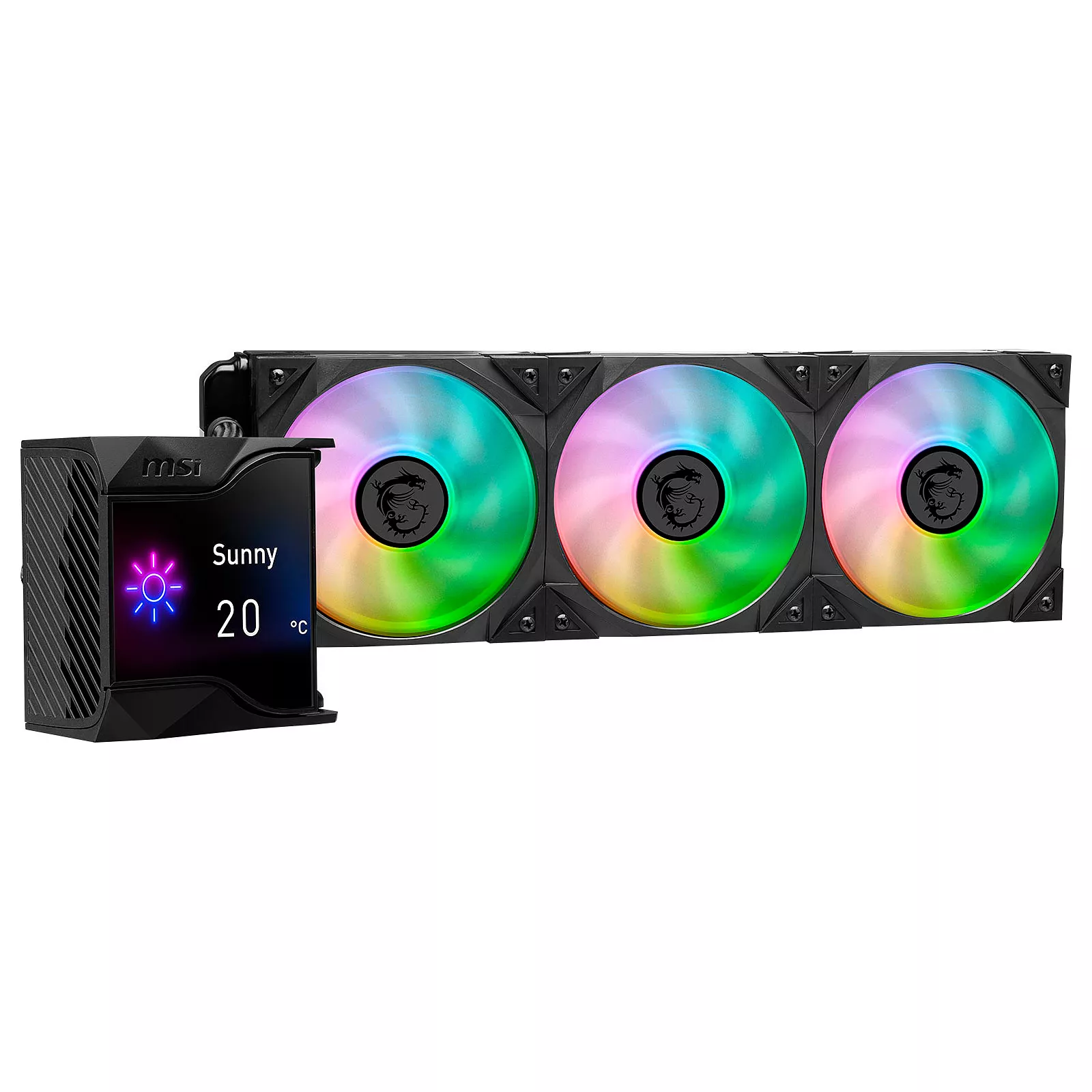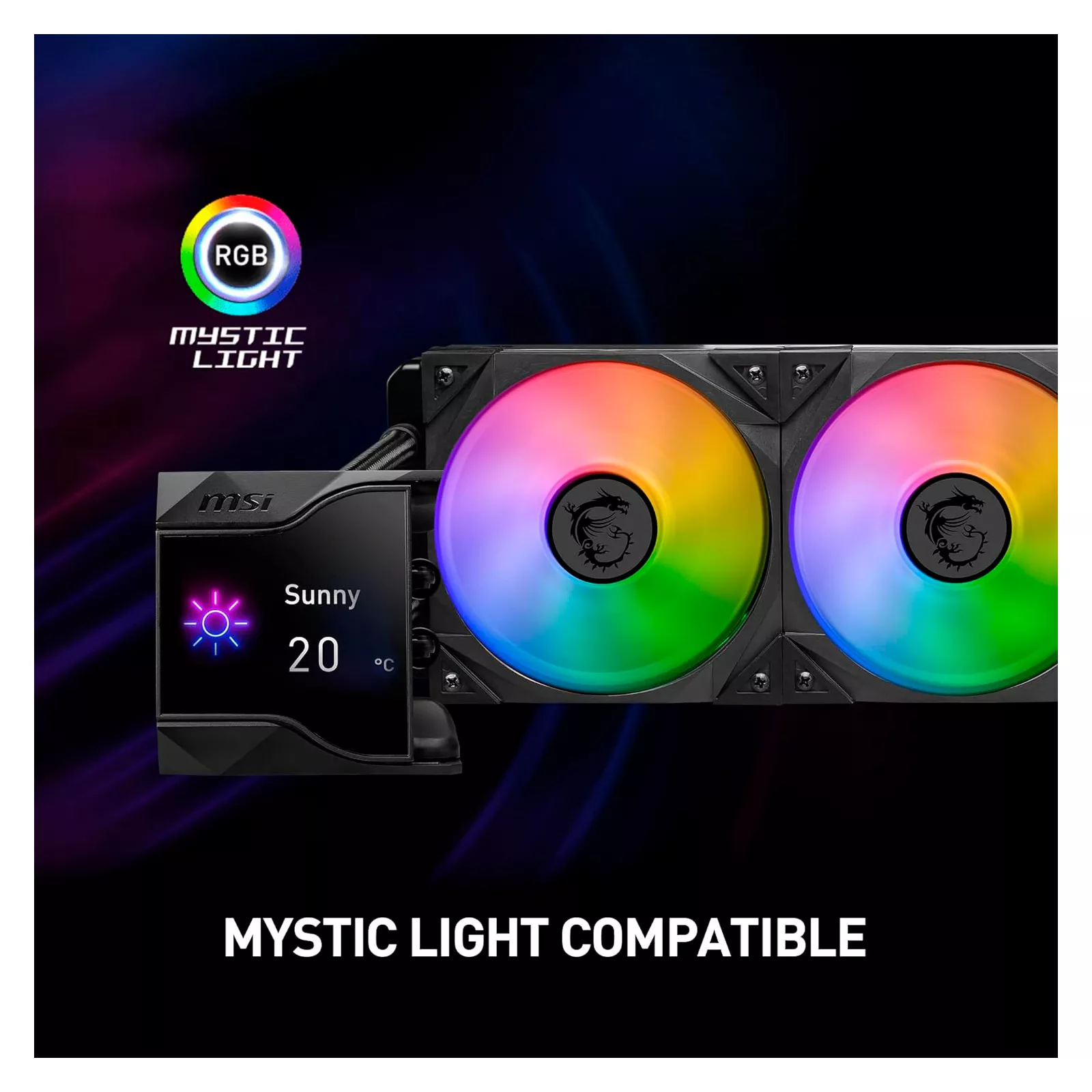 2,4 дюймовый IPS-дисплейСерия систем жидкостного охлаждения MPG CoreLiquid D AIO оснащен и укомплектована 2,4-дюймовым IPS-дисплеем, способным отображать информацию о состоянии системы, GIF, MP4, фотографии, тексты и информацию о погоде в реальном времени.
