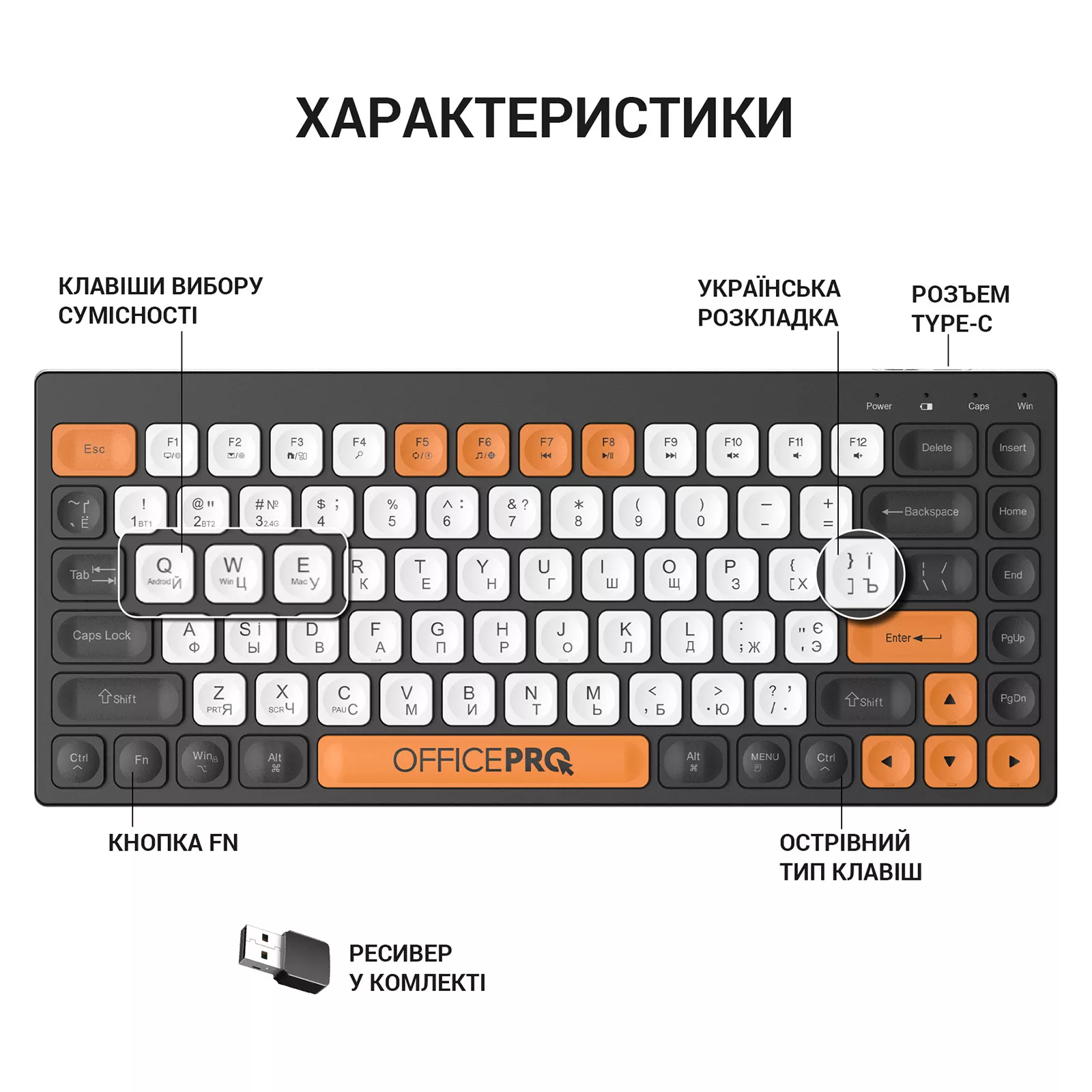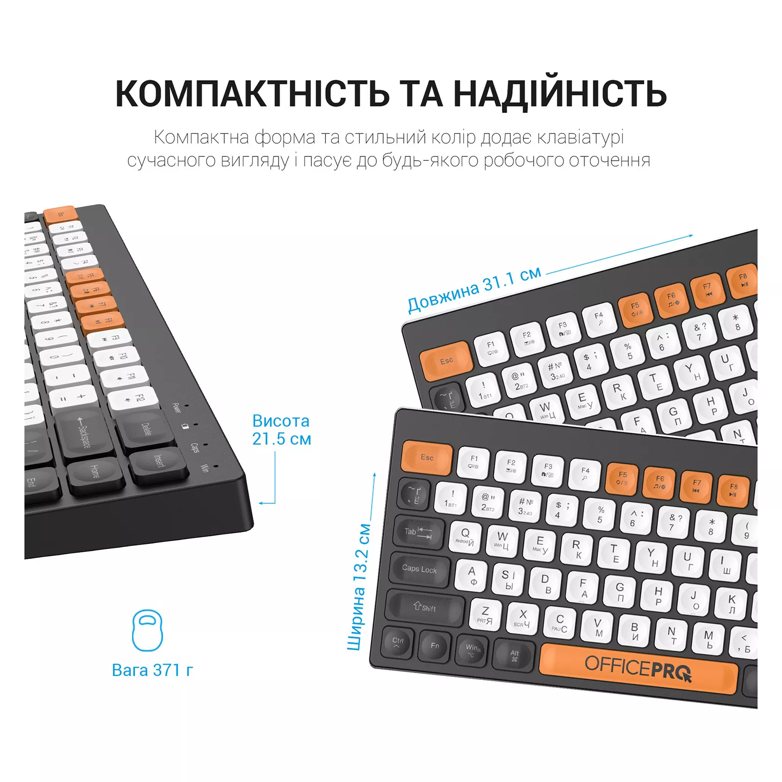 Клавиатура работает в двух режимах: вы можете использовать ее как обычную беспроводную клавиатуру или подключить к устройству через Bluetooth 5.0. У вас всегда будет удобный и быстрый доступ к компьютеру, ноутбуку, смартфону или планшету, даже на расстоянии десяти метров от них. Размеры клавиатуры очень компактны — всего 311 x 132 x 21.5 мм. Она займет минимум места на вашем столе и станет отличным дополнением к рабочей среде. Клавиатура имеет восемьдесят четыре клавиши, которые очень приятно нажимать. Клавиши рассчитаны на восемь миллионов нажатий, что гарантирует длительный срок службы. Больше не нужно беспокоиться об изношенных клавишах! Зарядить клавиатуру — дело одного часа, и вы сможете использовать ее непрерывно в течение длительного времени. Емкость батареи составляет 200 мА*ч. Теперь вы можете забыть о завязанных кабелях и рабочих местах. Эта клавиатура создана, чтобы сделать вашу работу комфортной и продуктивной. Убедитесь, что у вас всегда есть доступ к новейшим технологиям и удобствам на рабочем столе — вы заслуживаете этого!