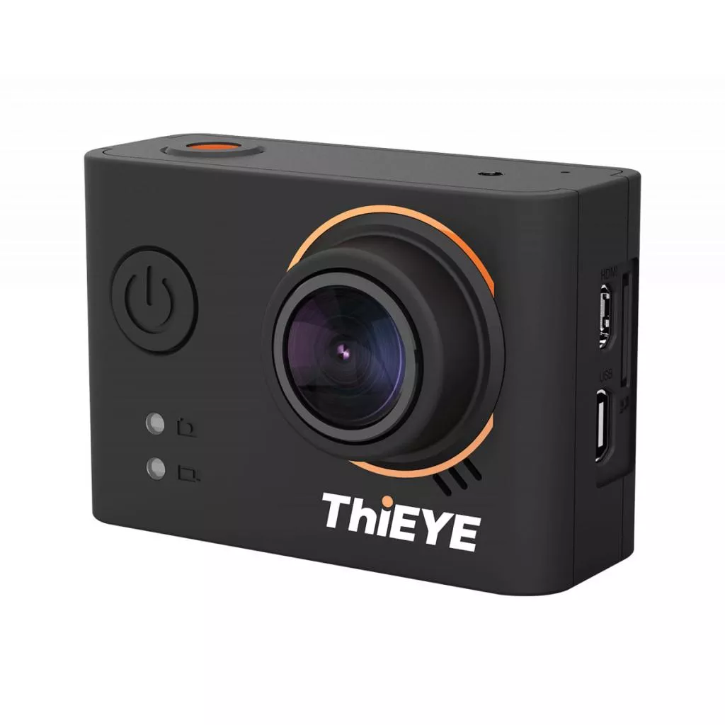 ThiEYE T3 Black – функциональная 4К экшн-камера по доступной цене, предусматривающая возможность ведения подводной съёмки глубиной до 60 м. с использованием опционального бокса. Формирование изображения обусловлено применением 12-мегапиксельного сенсора Sony IMX078, чипсета NTK96660, а также широкоугольной 170-градусной оптики с максимальным значением апертуры f/2.8. 55-граммовый корпус устройства размерами 60,3х41,2х23,3 мм несёт на борту литий-ионный аккумулятор вместительностью 1000 мАч, слот для карты памяти microSD объёмом до 64 ГБ, модуль Wi-Fi, 2-дюймовый LCD-экран и микрофон. Посредством опциональных крепежных аксессуаров конструкция может фиксироваться двумя контактными площадками.