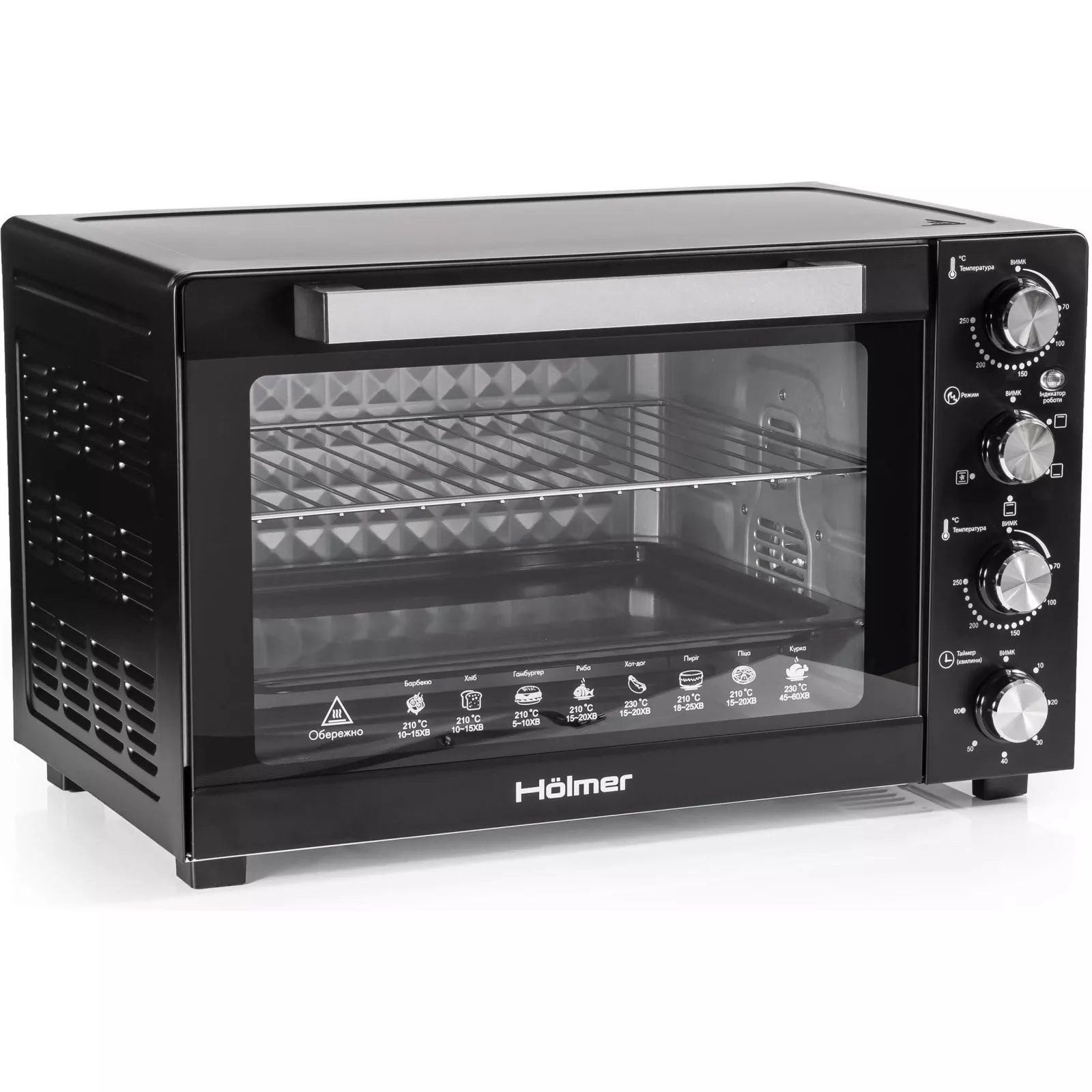 Таймер на 60 минут с автовыключением позволит вам не следить за временем приготовления. Вы можете заняться другими делами, пока печь сама готовит ваше блюдо.