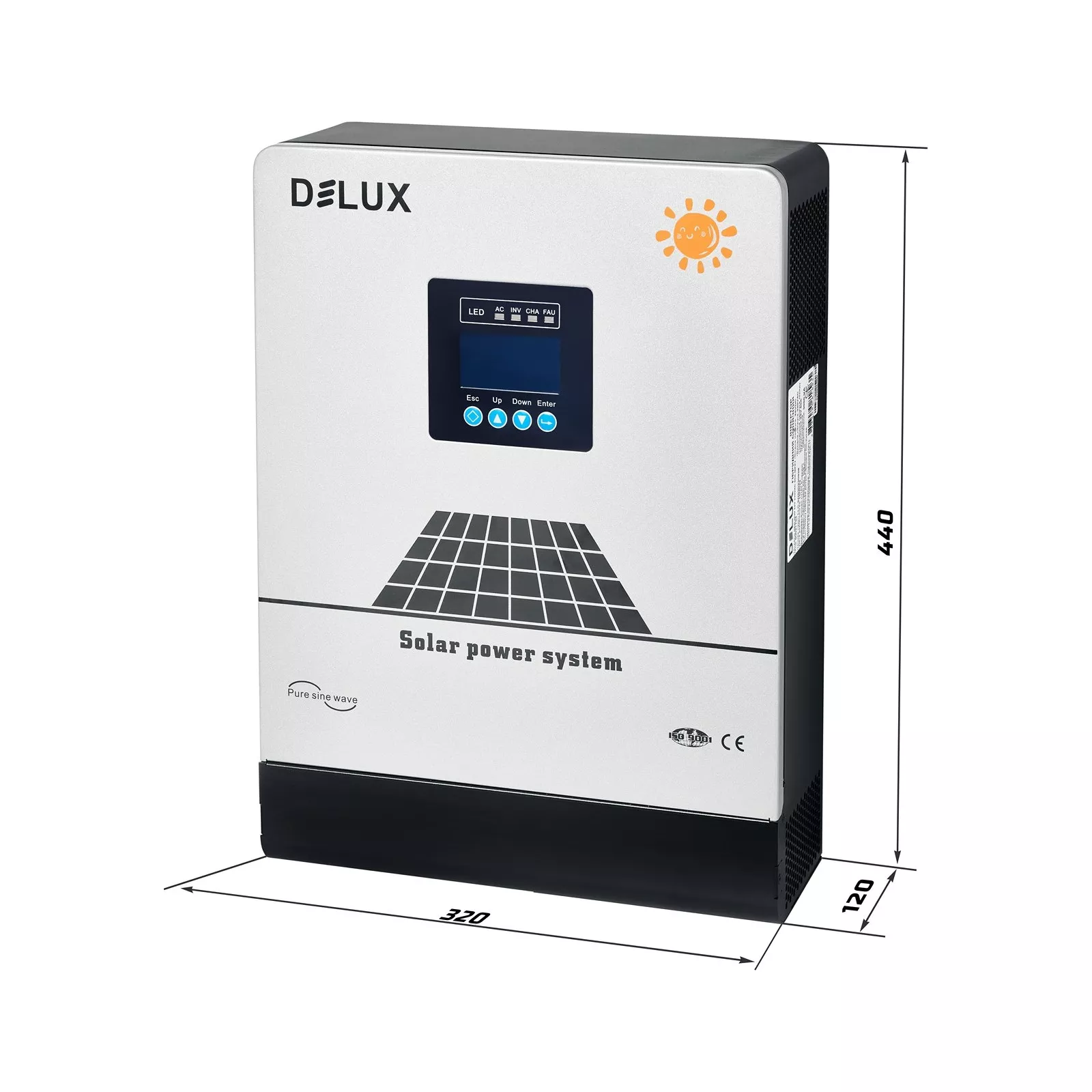 Инвертор DELUX это преобразующее электронное устройство. постоянное напряжение аккумуляторной батареи и солнечных панелей (DC) в однофазное переменное напряжение 220В с частотой 50 Гц (AC), аналогичное напряжению бытовой сети переменного тока. Этот инвертор выполняет также функцию зарядного устройства для зарядки аккумулятора от бытовой сети переменного тока.