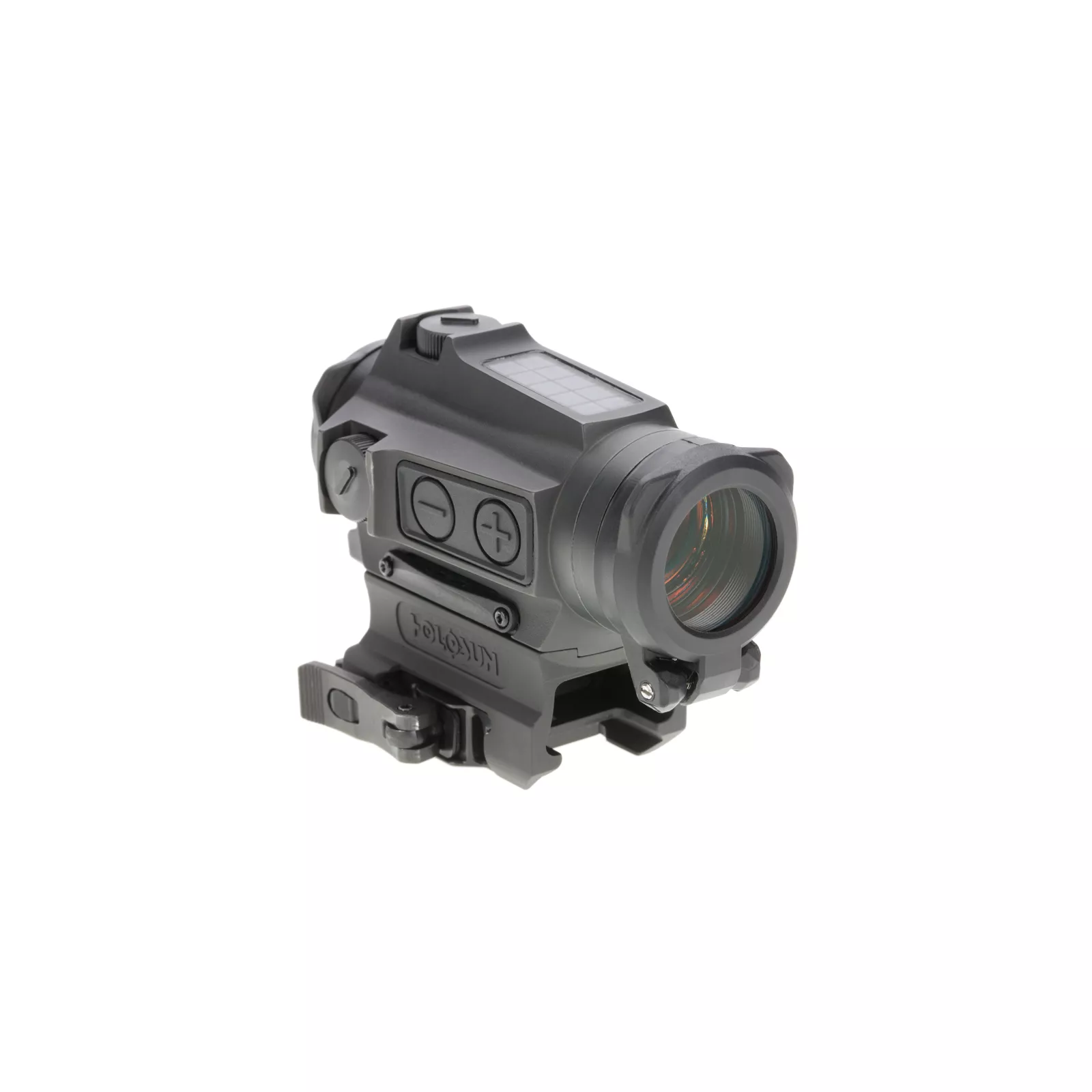 < b>Holosun HE515CT-RD – это 20 мм коллиматорный прицел закрытого типа на высоком (съемном) креплении типа Absolute Co-witness. Модель относится к линейке Elite, так как полностью выполнена из титана. Имеет защиту по стандарту IPX8, снабжена красной подсветкой прицельной сетки. В прицеле использована гибридная система питания от солнечной панели и стандартной щелочной батареи типа "таблетка". Коллиматор предназначен для использования с винтовками и карабинами, а крепится на планку Вивер/Пикатинни. Клипса Quick Detach обеспечит быстрый монтаж/демонтаж без использования дополнительного инструмента. Финишная обработка поверхности отличается превосходным качеством, абсолютно матовая, не бликует и выглядит с оружием как единое целое. МОА; точка 2 МОА в круге 65 МОА. Интенсивность подсветки можно настраивать в зависимости от внешнего освещения и окружающих объектов. Всего доступно 12 уровней яркости. Также производитель предусмотрел съемную антибликовую сетку Killflash и прозрачные колпачки на оптику. Многослойное просветление основной линзы дает отличную видимость и легкость при наведении цели. Фирменная технология Shake Awake™ обеспечивает до 50000 часов работы (режим точка 2 МОА) от одного заряда основной батареи, активируя подсветку только при необходимости, когда вы взяли в руки оружие или просто не используете его.