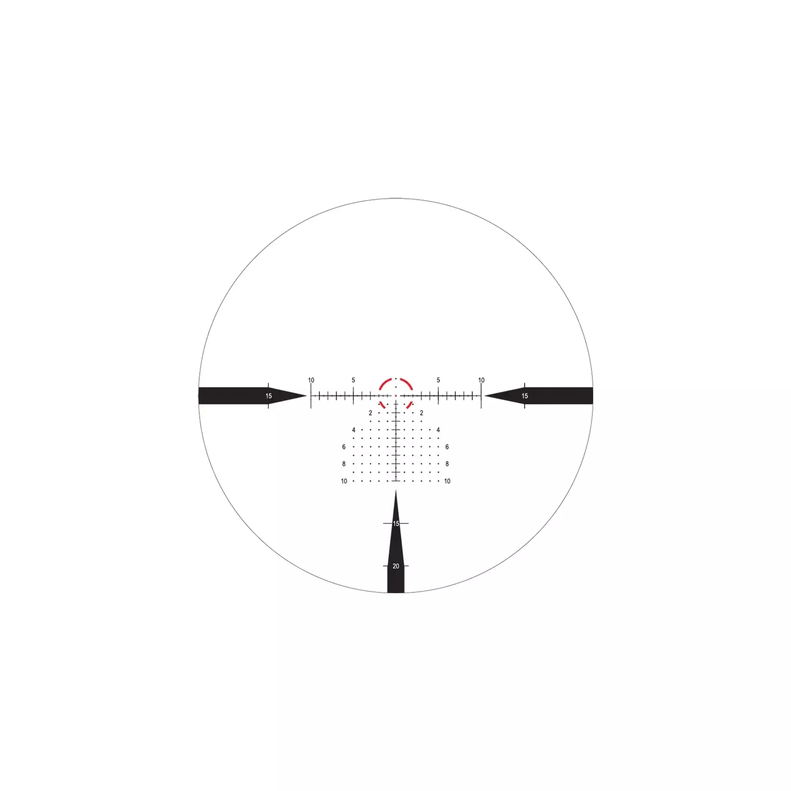 Прицельная сетка FC-DMx – это усовершенствованная версия прицельной сетки FC-DM. Сегментированный круг сетки FC-DMx был увеличен в диаметре с 2MRAD до 4MRAD и стал тоньше, что позволяет пользователю четко видеть цель для быстрого и беспрепятственного принятия решения стрелять/не стрелять. Центральная точка 0,2MRAD (0,7 МОА) обеспечивает точную наводку на цель на большой кратности увеличения. Беспрепятственный обзор цели, яркая подсветка при дневном свете и интуитивно понятная маркировка FC-DMx предоставляют пользователю расширенные возможности для обнаружения как близких, так и дальних целей.