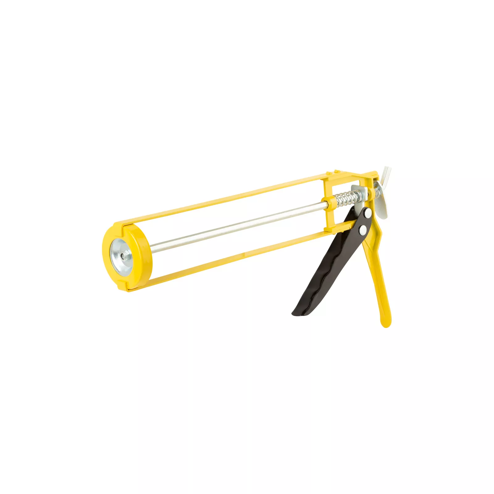 Конструкция состоит из курицы, ручки, корпуса и штока. Корпус скелетного типа служит емкостью тубы с герметиком. Принцип работы следующий: нажатие на курок дает движение штоку, которое в свою очередь двигает поршень внутри тубы с герметиком, создавая давление, в результате которого содержимое выходит наружу.