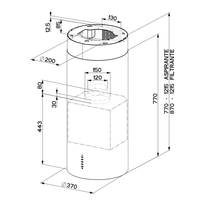 Эта модель оснащена и укомплектована всем необходимо для создания чистой и комфортной атмосферы на вашей кухне. Мощный мотор и эффективная система всасывания гарантируют быстрое удаление запахов и жира. Низкий уровень шума и удобное управление делают использование вытяжки максимально и в полном объеме комфортным. датчик (индикатор) загрязнения фильтров поможет всегда поддерживать вытяжку в чистоте. Cylindra Isola Gloss Plus – это островная вытяжка с простым, изысканным стилем и высокой технологичностью. Ее традиционная цилиндрическая форма является основным элементом модных кухонь и идеально вписывается в любой интерьер. Она может быть установлена в фильтрующем или всасывающем варианте.