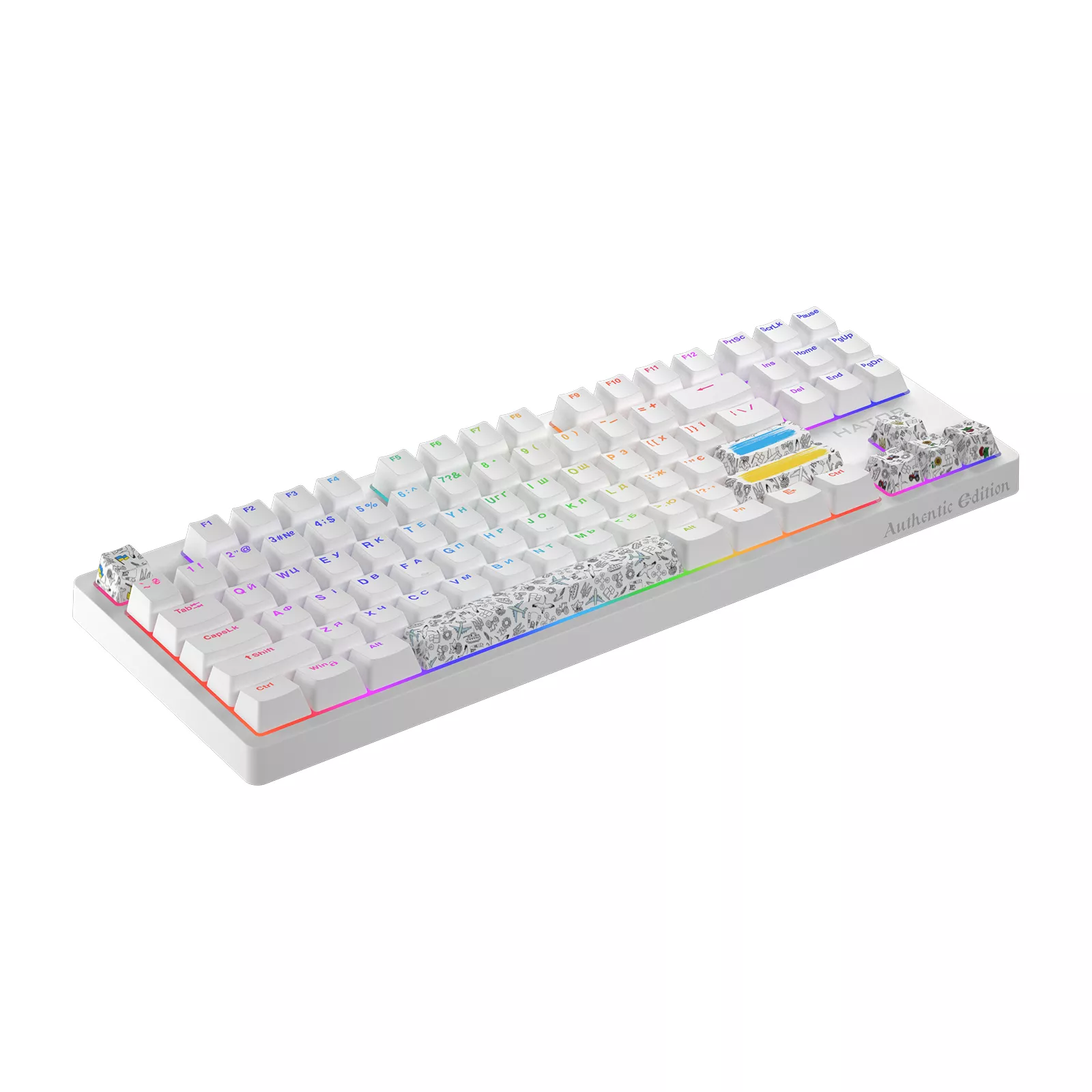 Клавиатуры Rockfall 2 Mecha Authentic Edition имеют три уникальных дизайна за счет наборов кейкапов с сублимационным нанесением. А также отличаются тихим и комфортным тайпингом благодаря новым линейным переключателям Aurum Milky Way Silent. Выберите свой аутентичный дизайн клавиатуры. База корпуса выполнена из нейлона, стем – из POK-пластика, а контакты – из сплава серебра, покрытого золотом. Благодаря резиновым прокладкам в конструкции достигается наибольший акустический комфорт при работе.