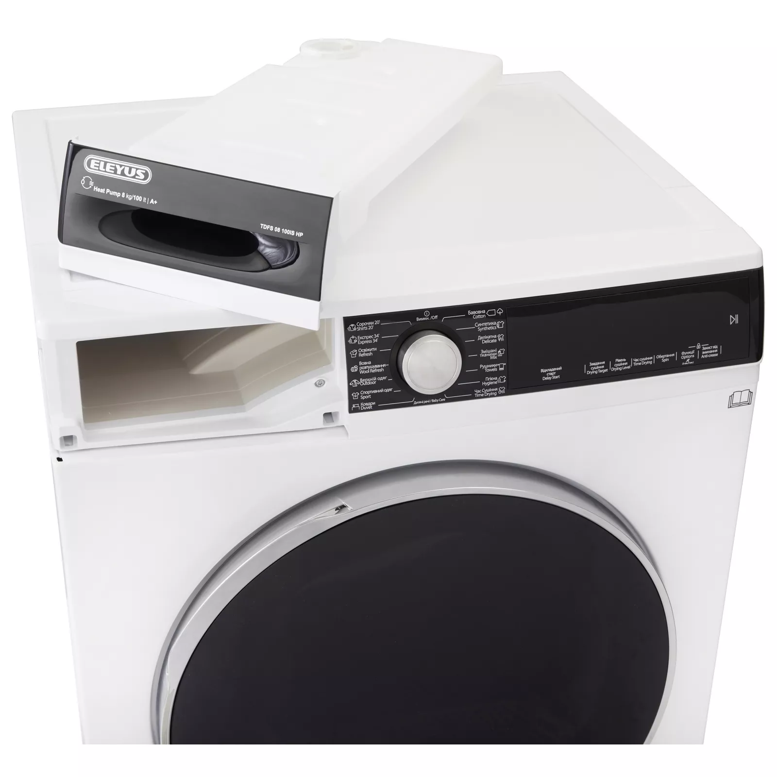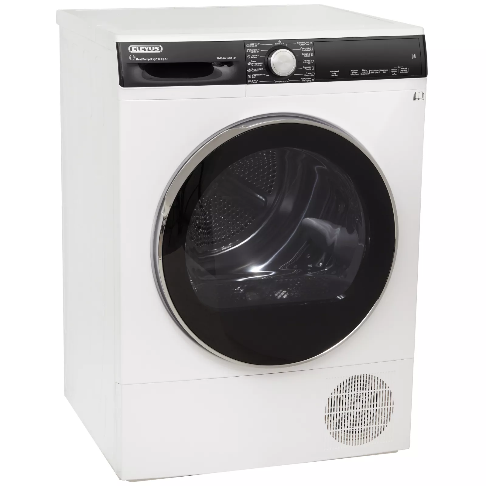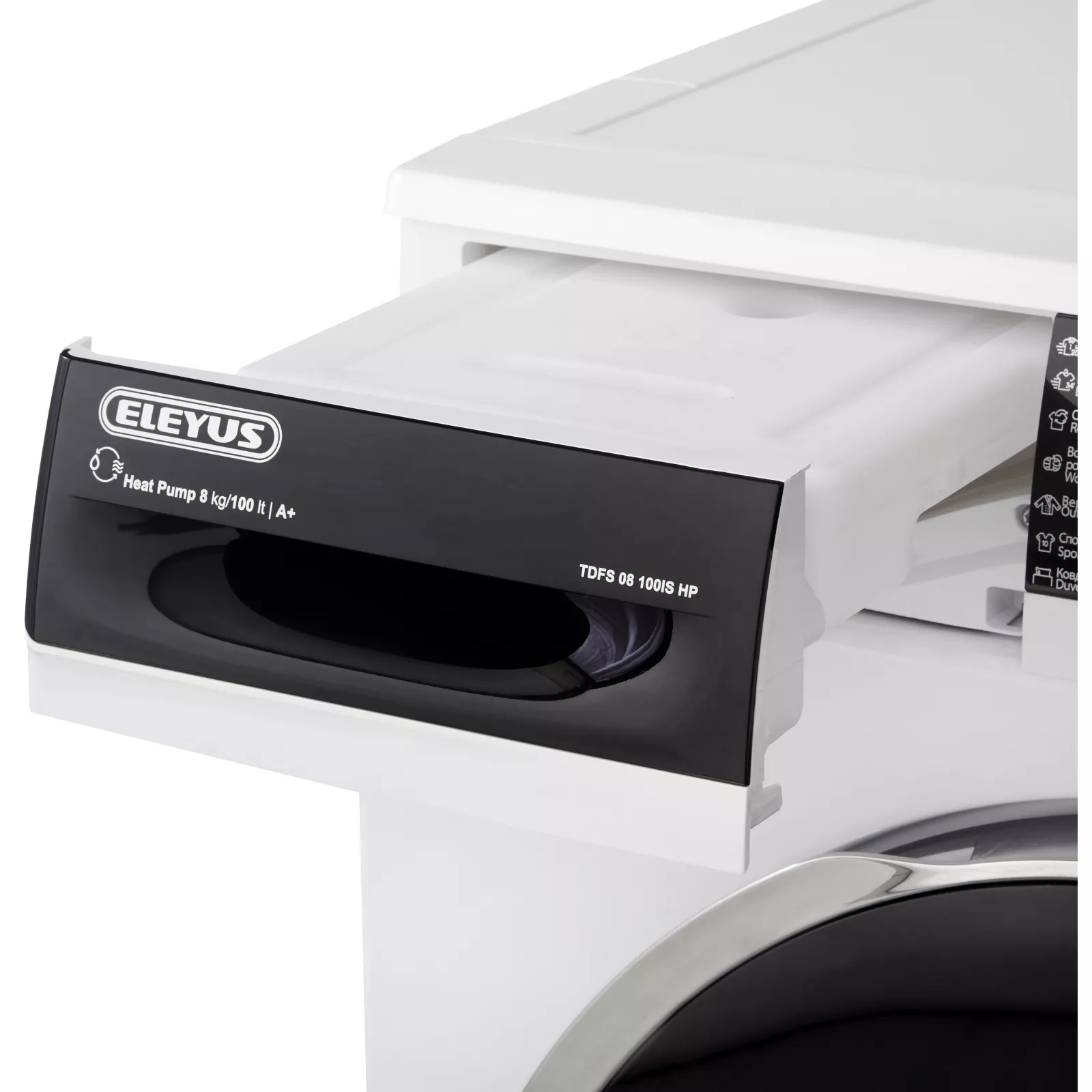 ELEYUS TDFS 08 100IS HP – сушильная машина с тепловым насосом, энергоэффективностью класса A+ и барабаном Pearl Drum объемом 101 л. Просто положите вещи внутрь и они будут мягкими и сухими в любое время года, в любую погоду. Отводит конденсат автоматически или собирает его в специальном лотке без подключения к сливу. Можно устанавливать «в колонну» со стиральной машиной. Heat Pump: тепловой насос для эффективности класса А+