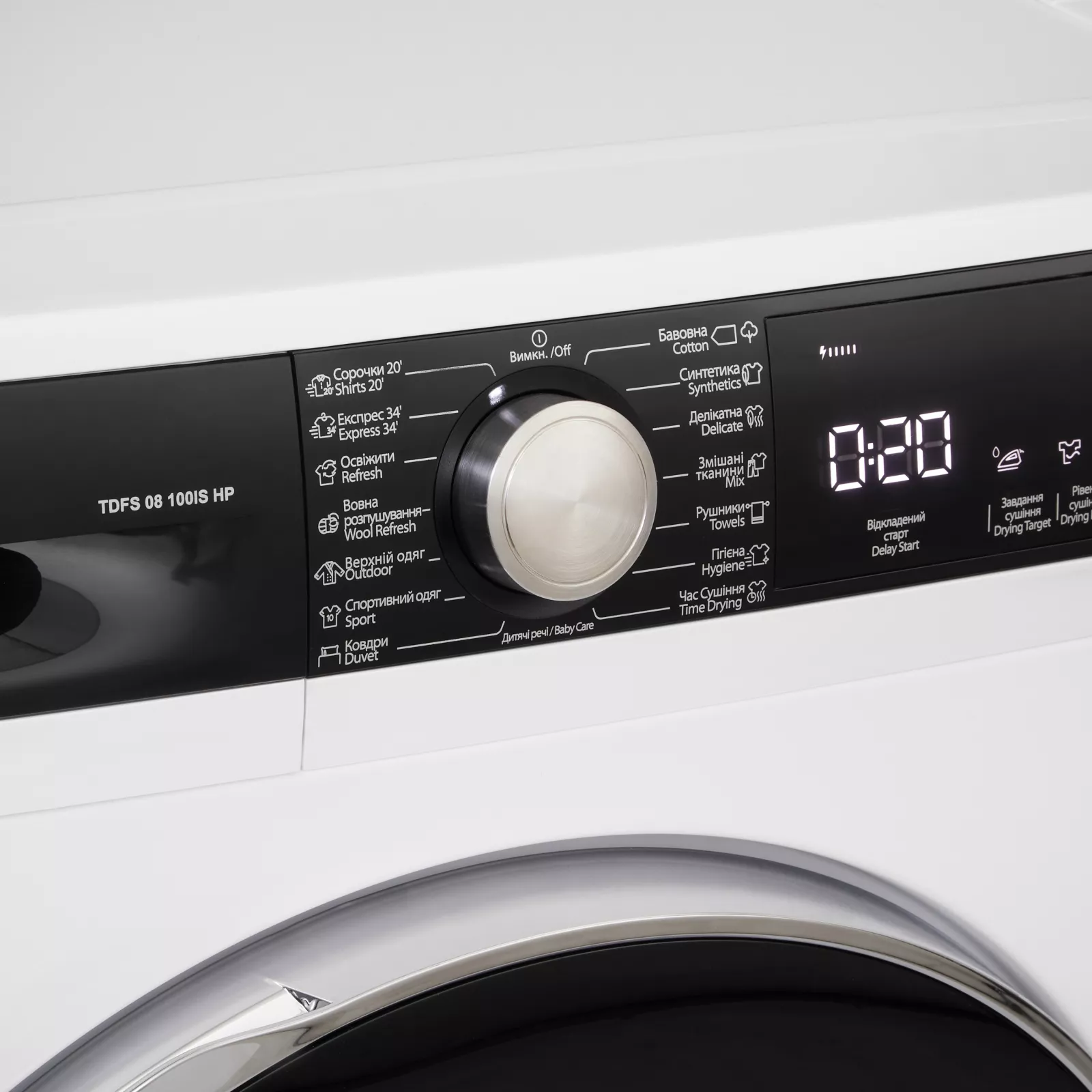Большая дверца с затемненным стеклом и хромированным обрамлением позволяет удобно загружать одежду. Сенсорная панель без лишних кнопок и углублений делает сушильную машину не только эстетичной, но и легкой в уходе. Управление легким прикосновением пальца Выберите уровень, задание, длительность сушки и дополнительные функции на сенсорной панели. Большой LED-дисплей показывает все настройки и время до завершения сушки. Следить за процессом проще простого!