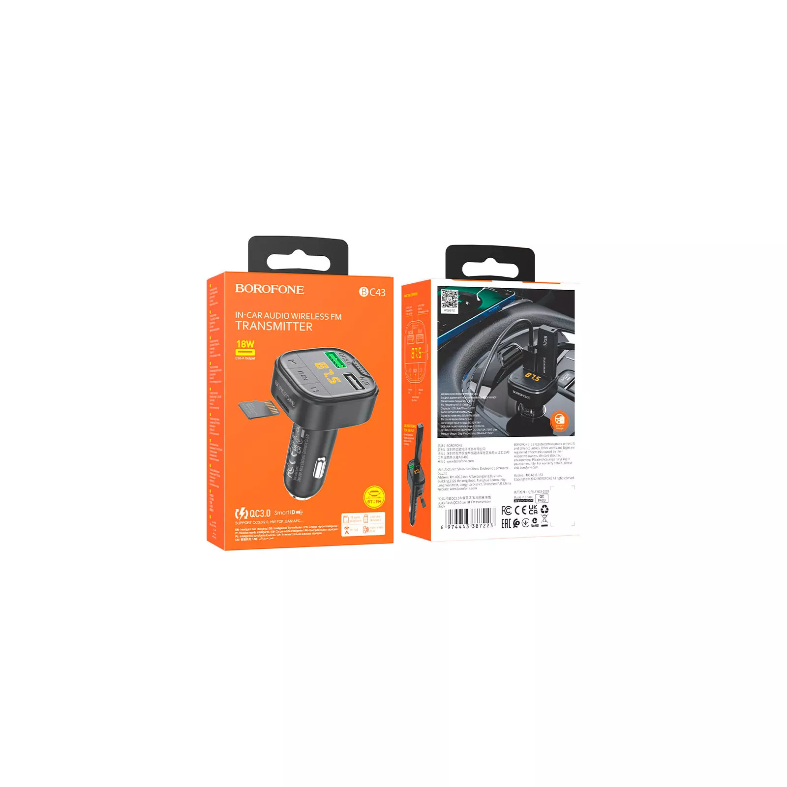 Borofone BC43 Flash< /b> - это простой в использовании трансмиттер, который поможет расширить мультимедийные возможности практически любого автомобиля. Модель предназначена для подключения к разъему прикуривателя и после настройки на одну волну со штатным FM-приемником позволит без проводов воспроизводить музыку с носителей информации или со смартфона через акустику автомобиля.