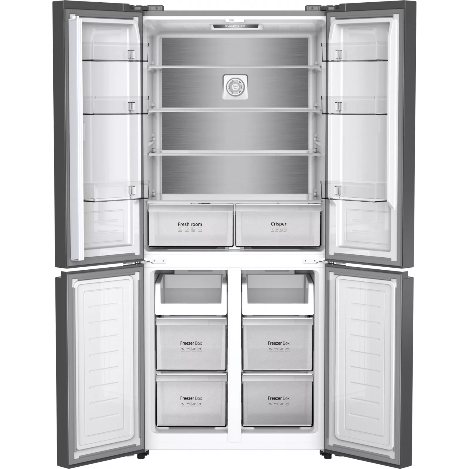Многодверный холодильник с нижней морозильной камерой, система NoFrost в морозильной камере, 496 л, класс энергопотребления: A++, электронное управление, дисплей, цвет черное стекло.