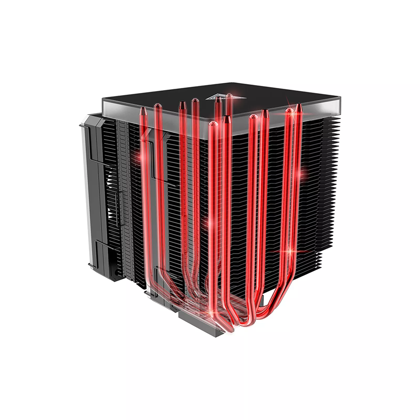 Шесть тепловых трубок и конструкция Dual TowerПо сравнению с однобашенными кулерами, двухбашенные кулеры обеспечивают еще большую площадь поверхности рассеяния тепла. В Metal DT24 Premium используют шесть усовершенствованных 6-миллиметровых медных тепловых трубок, сочетающихся со специализированной конструкцией ребер для повышения теплоотдачи. Система с двумя вентиляторами также обеспечивает увеличенный воздушный поток для максимальной и в полном объеме эффективности охлаждения.