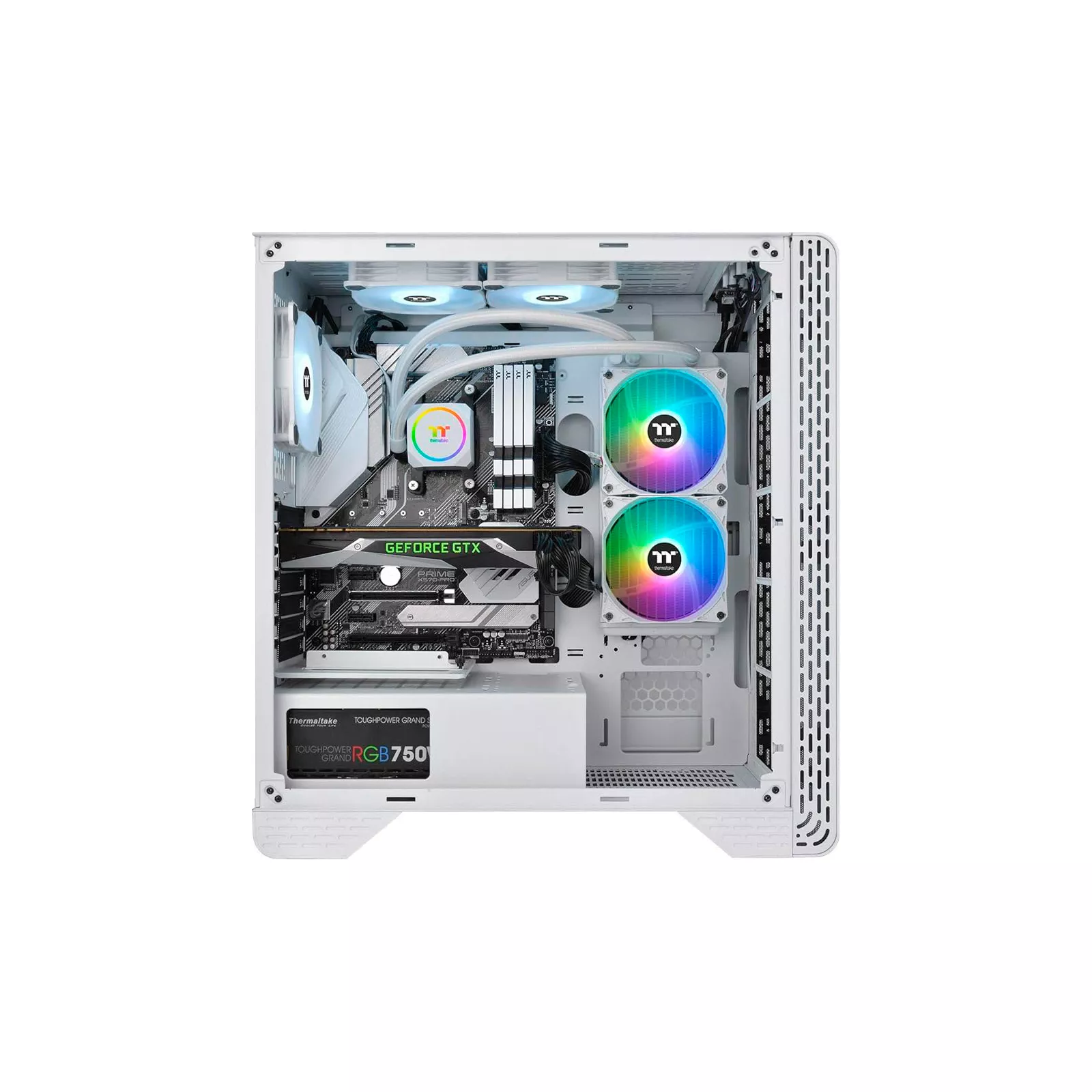TH240 ARGB Sync Snow Edition - это жидкостный кулер "все-в-одном", содержащий два 120-мм мощных вентилятора с высоким статическим давлением и высокопроизводительный радиатор вместе с водоблоком . 16.8M RGB-подсветка с предварительно установленными режимами освещения через интеллектуальный контроллер вентилятора или синхронизация с RGB-программой материнской платы для получения потрясающих цветов RGB.