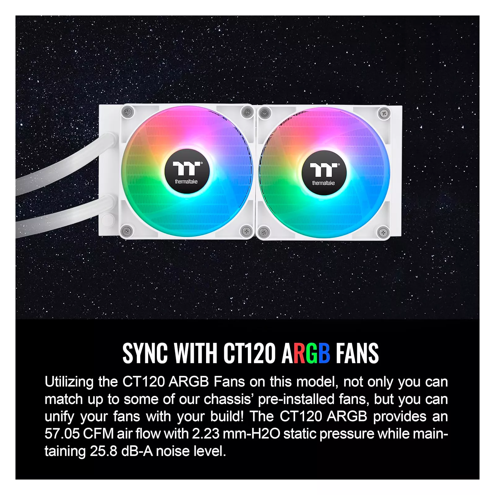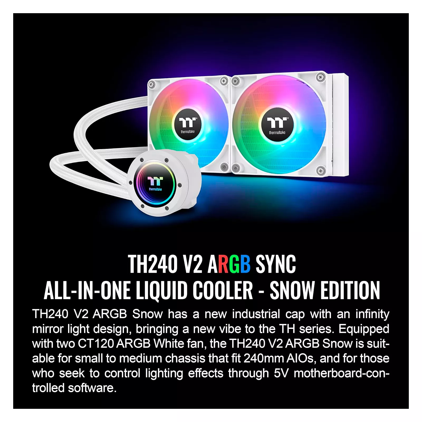 Серия TH V2 ARGB Snow имеет новый корпус с зеркальным дизайном подсветки в виде бесконечности, что вносит новую атмосферу в серию TH. оснащен и укомплектована двумя вентиляторами CT120 ARGB White, модель TH240 V2 ARGB Snow подходит для малых и средних корпусов, в которые устанавливаются 240-мм AIO, а также для тех, кто стремится управлять световыми эффектами с помощью программного обеспечения, управляемого 5 В материнской платой.