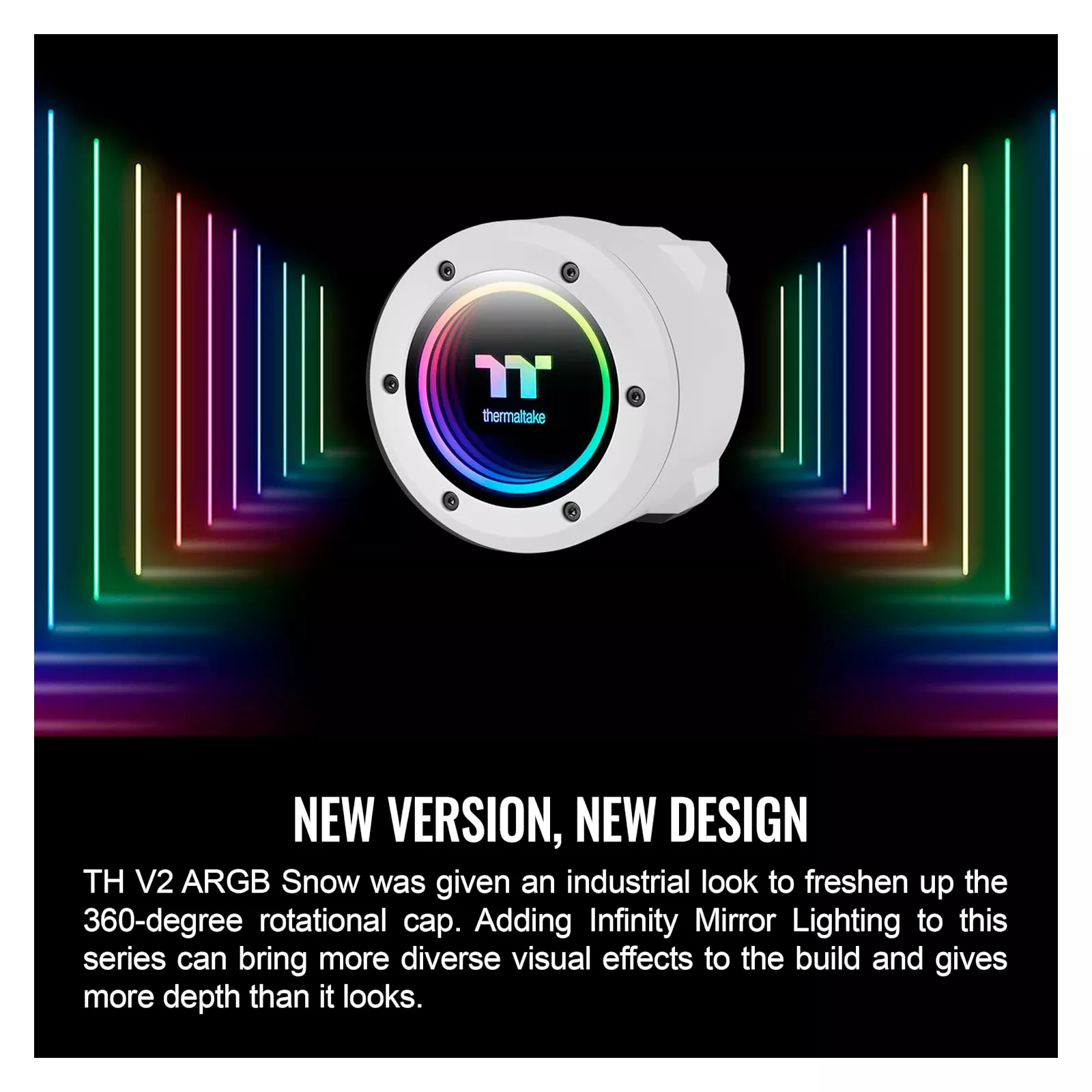Серия TH V2 ARGB Snow теперь готова для всех типов сборок, в серии есть три модели со 120-мм вентиляторами, включая TH 120/240/360 V2 ARGB Snow, и две модели со 140-мм вентиляторами, включая TH 280/420 V2 ARGB Snow.