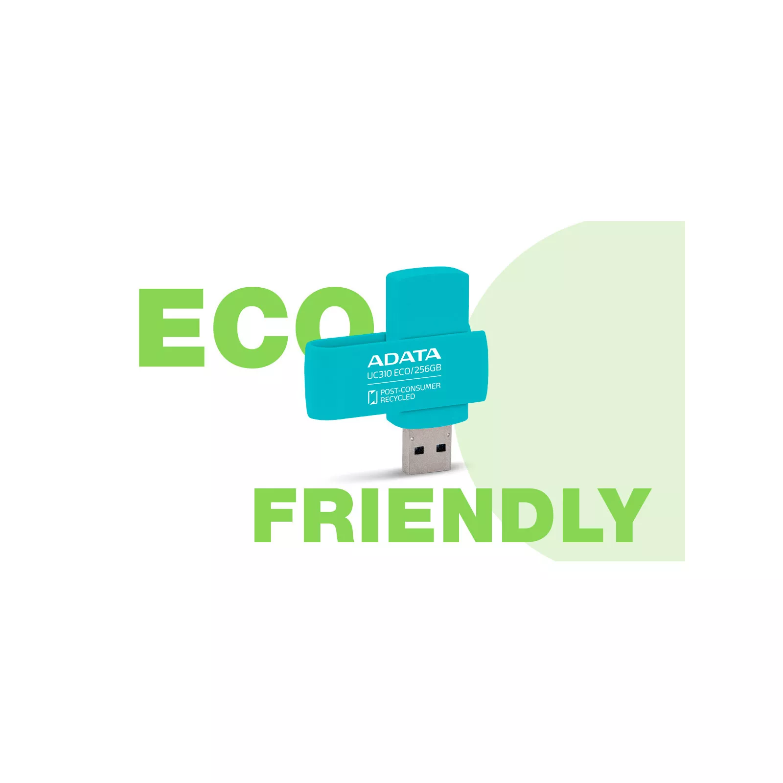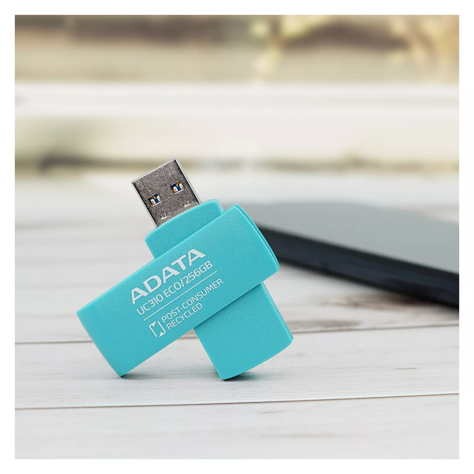 Флешка A -DATA USB 3.2 UC310 Eco 256Gb Green – простое и доступное решение, если вам нужно передать данные между разными компьютерами или носить с собой несколько цифровых копий важных документов. Не всегда ведь можно взять с собой внешний жесткий диск или подключиться к облачному хранилищу. А небольшой по размерам тайный накопитель удобно носить с собой, сохранив всю необходимую информацию. ), что позволяет эффективно сократить выбросы углекислого газа. Выбросы углекислого газа во время производственного процесса значительно сокращаются, что уменьшает количество сточных вод и энергии, способствуя развитию циркулярной экономики. Поворотный разъем Поворотный разъем без колпачка удобно открывает доступ к USB-интерфейсу простым поворотом. Помимо пыленепроницаемости, пользователям больше не нужно беспокоиться о том, что они могут потерять защитный колпачок.