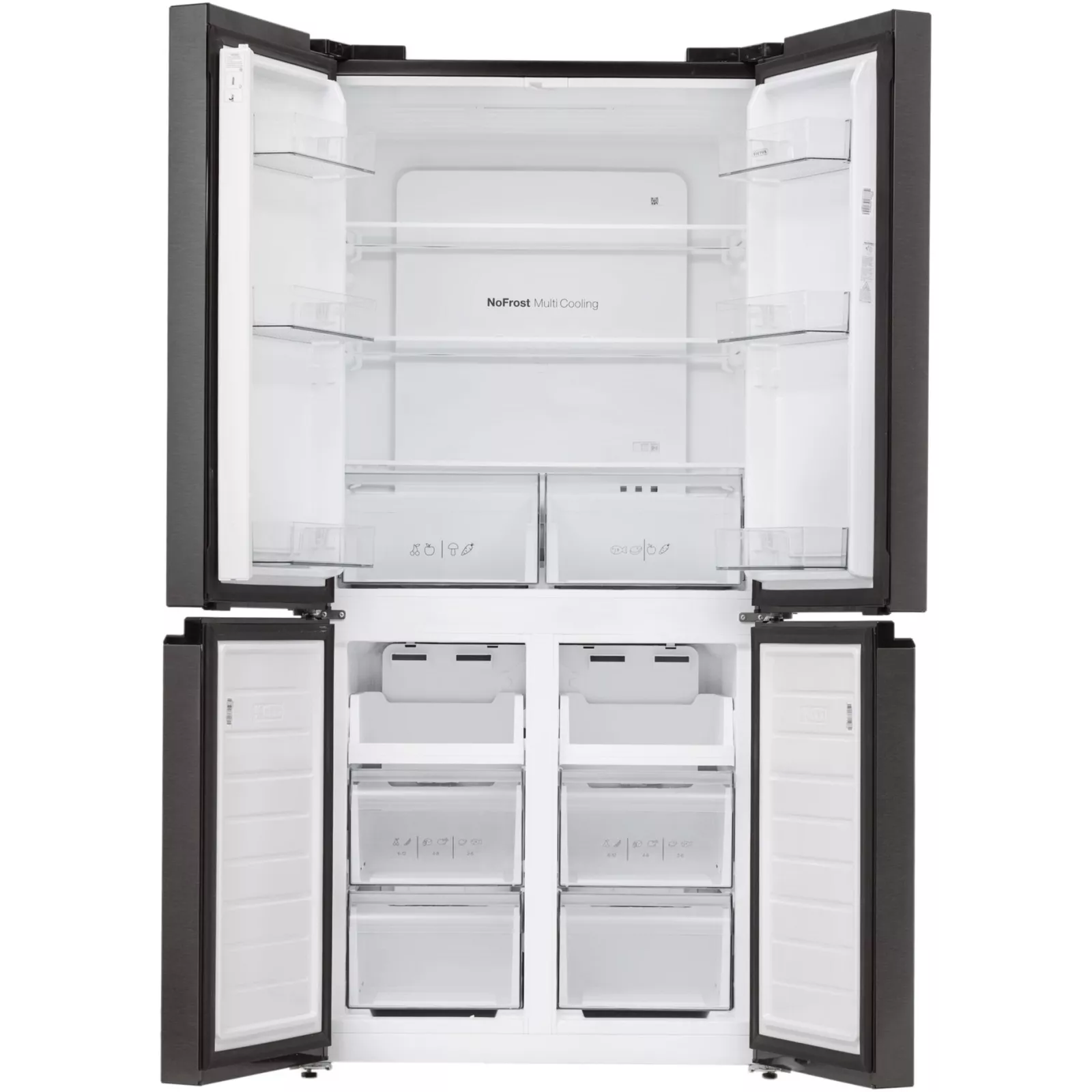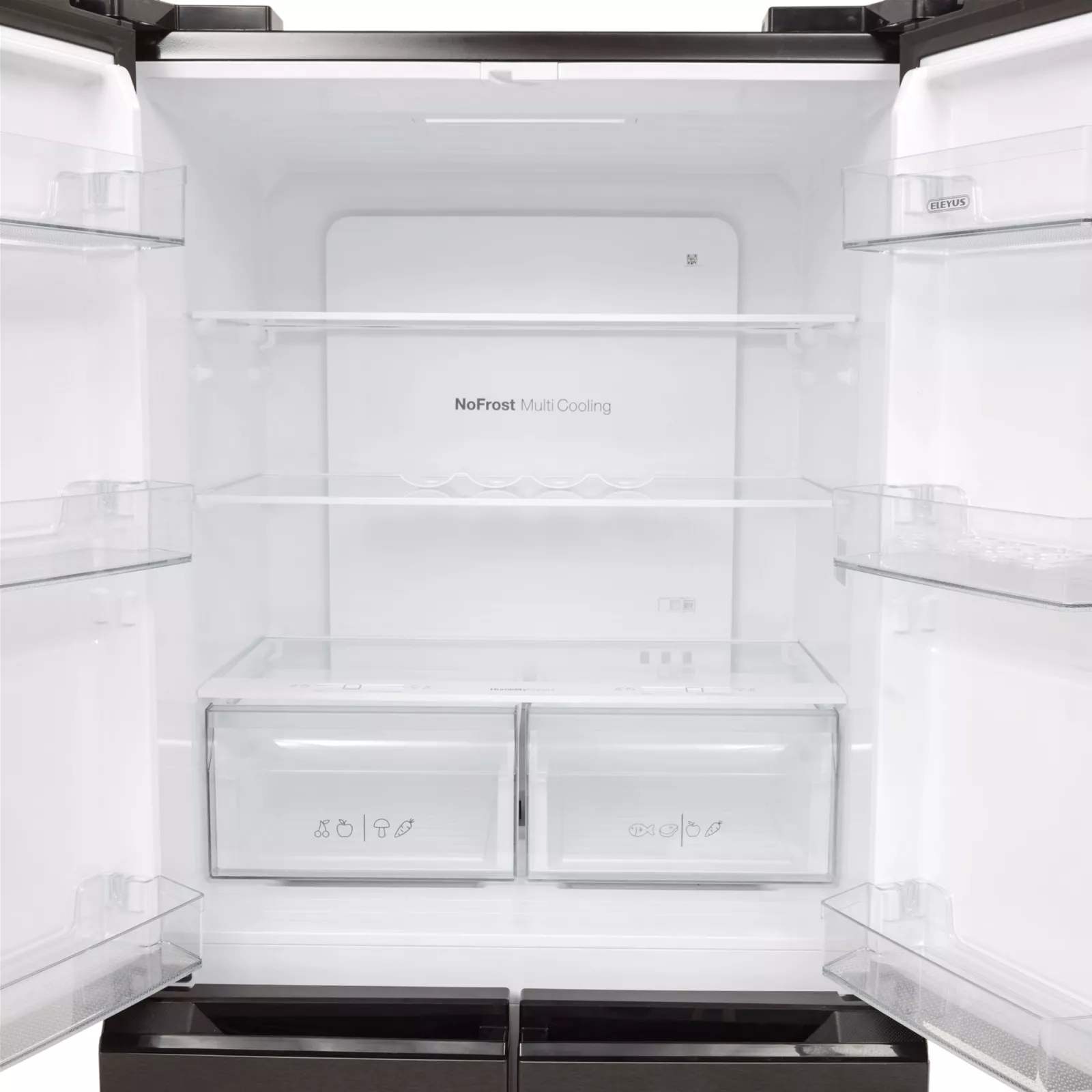 Мечтаете о большом холодильнике для всей семьи? Новый многодверный ELEYUS VRNW4179E84 DXL шириной 84 см легко уместится в большинстве домов. А его полезный объем 459 л позволит наполнять жизнь любимыми вкусами! Улучшенная технология охлаждения No Frost Multi Cooling Холодильник с технологией No Frost Multi Cooling имеет две независимые системы циркуляции воздуха. Между холодильной и морозильной камерами не перемешиваются запахи, а внутри не образуется иней или конденсат. Каждый уголок равномерно охлаждается, сохраняя вкус и свежесть продуктов.