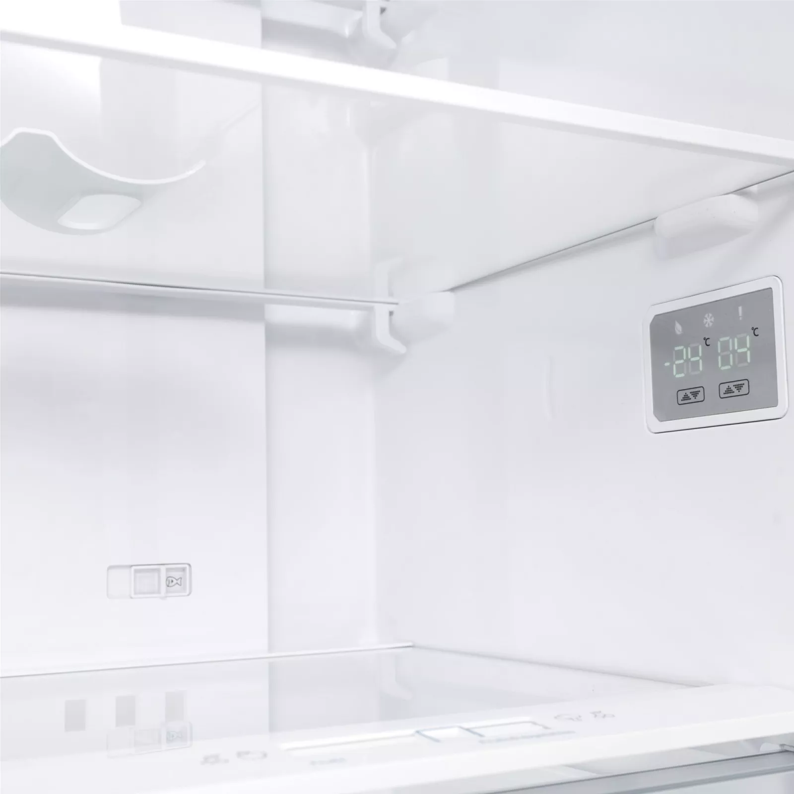 В отличие от обычного компрессора, инверторный компрессор плавно увеличивает обороты при запуске. Благодаря этому двигатель работает без пусковых перегрузок, функционирует значительно дольше и потребляет меньше электроэнергии. Технология Freezer Shield Технология позволяет установить холодильник в прохладном месте. Он исправно работает, даже если окружающая температура опускается до -15 °C.