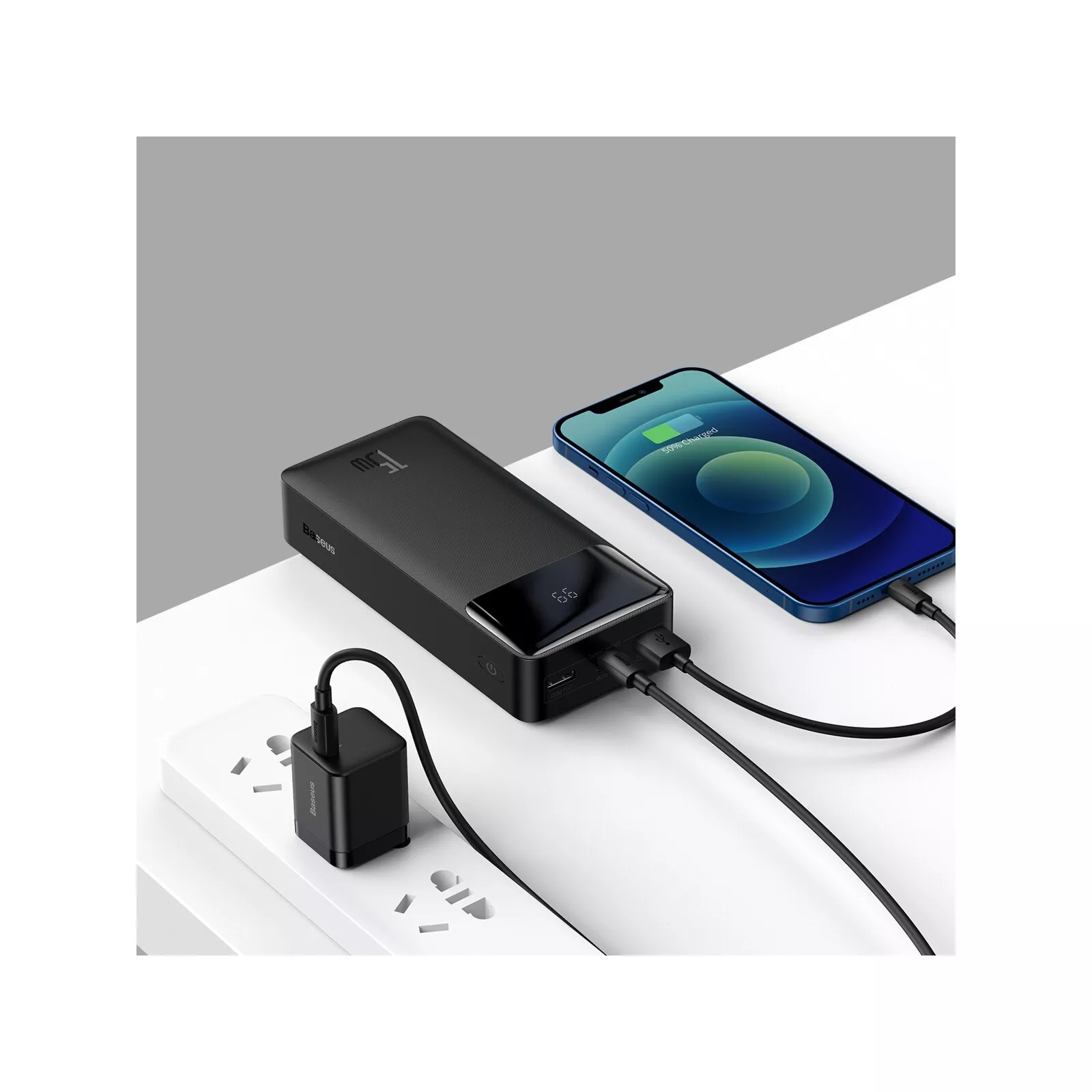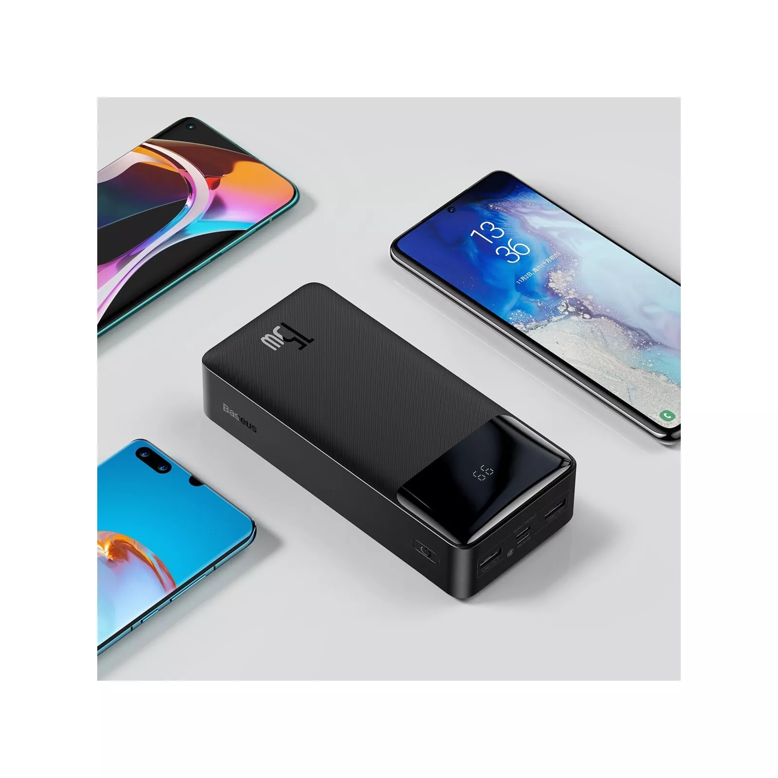 Baseus Bipow Digital Display 15W 30000mAh — портативное зарядное устройство с 4 разъемами и поддержкой быстрой зарядки.