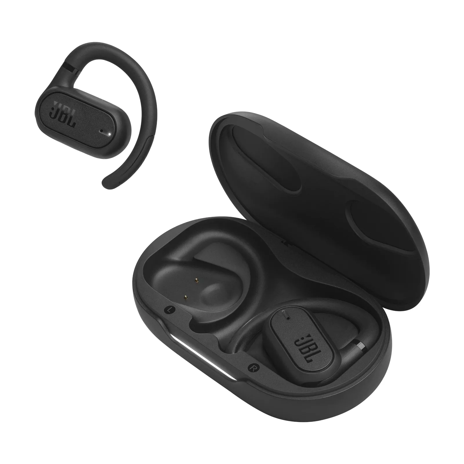 Беспроводные TWS-наушники открытого типа JBL Soundgear Sense оснащены и укомплектованы технологией JBL OpenSound с воздушной проводимостью. Они не полностью перекрывают ушной канал, поэтому их можно не снимать часами, не ощущать дискомфорта.