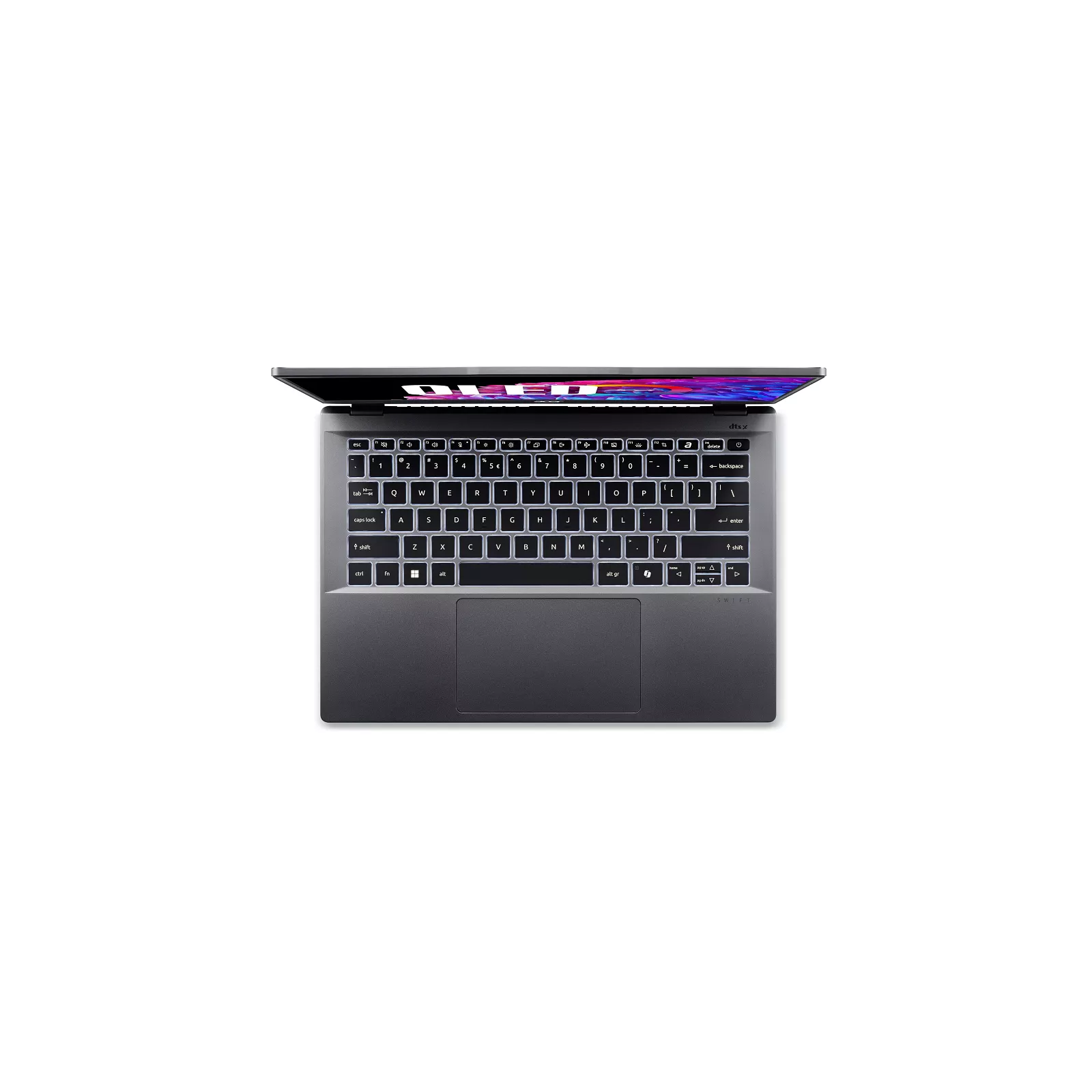 Acer Swift Go 14 – стильный и производительный ноутбук с поддержкой ИИ. Получил элегантный дизайн, удачно подчеркнущий изысканный вкус владельца. Он выполнен из алюминия в компактных размерах, поэтому идеально подойдет для тех, кто нуждается в производительном девайсе для мобильной работы или обучения.