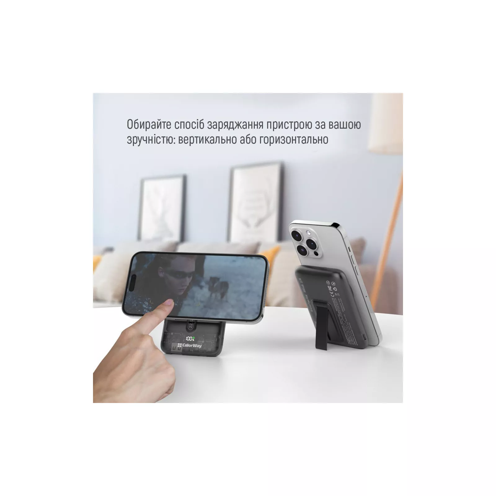 MagSafe Power Bank ColorWay – это универсальная, компактная, мобильная батарея, с беспроводной зарядкой QI, которая может заряжать практически все устройства поддерживающие зарядку от USB. Встроенные мощные неодимовые магниты для надежной фиксации телефона. Интегрированная подставка и поддержка сквозной зарядки (до 15Вт) позволяет использовать PowerBank в качестве настольного зарядного устройства. Защита от перенапряжения, перегрузки и перегрева. LED дисплей для отображения состояния емкости аккумулятора.