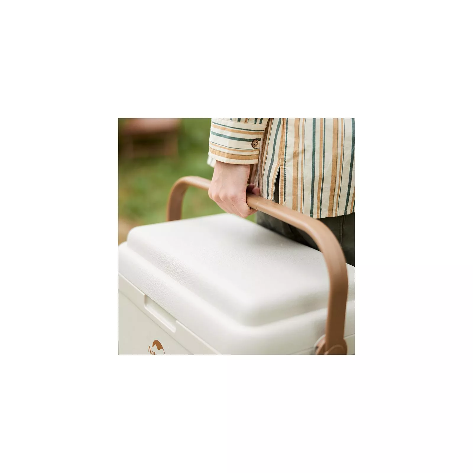 Компактный, вместительный холодильник. За счет наличия откидной ручки удается просто транспортировать или использовать его в качестве столешницы. Ручка для переноски дополнительно уплотнена, имеет закругленные углы, надежно фиксирует крышку возможного открывания. Открыть холодильник можно только в том случае, когда ручка находится спереди.