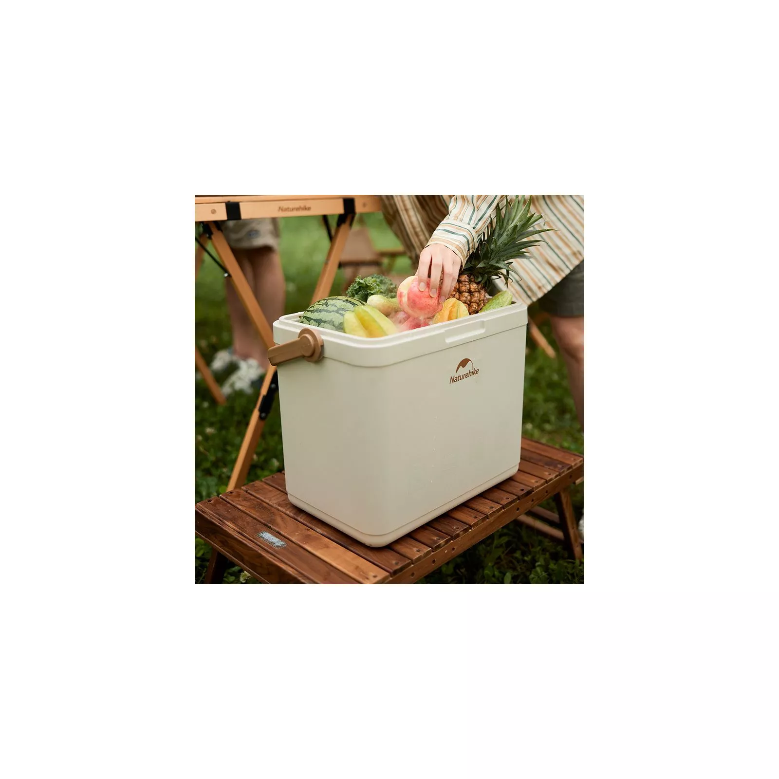 Компактный, вместительный холодильник. За счет наличия откидной ручки удается просто транспортировать или использовать его в качестве столешницы. Ручка для переноски дополнительно уплотнена, имеет закругленные углы, надежно фиксирует крышку возможного открывания. Открыть холодильник можно только в том случае, когда ручка находится спереди.