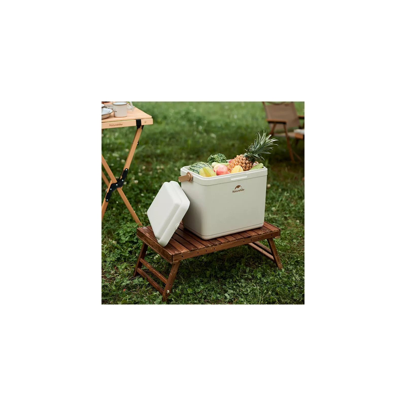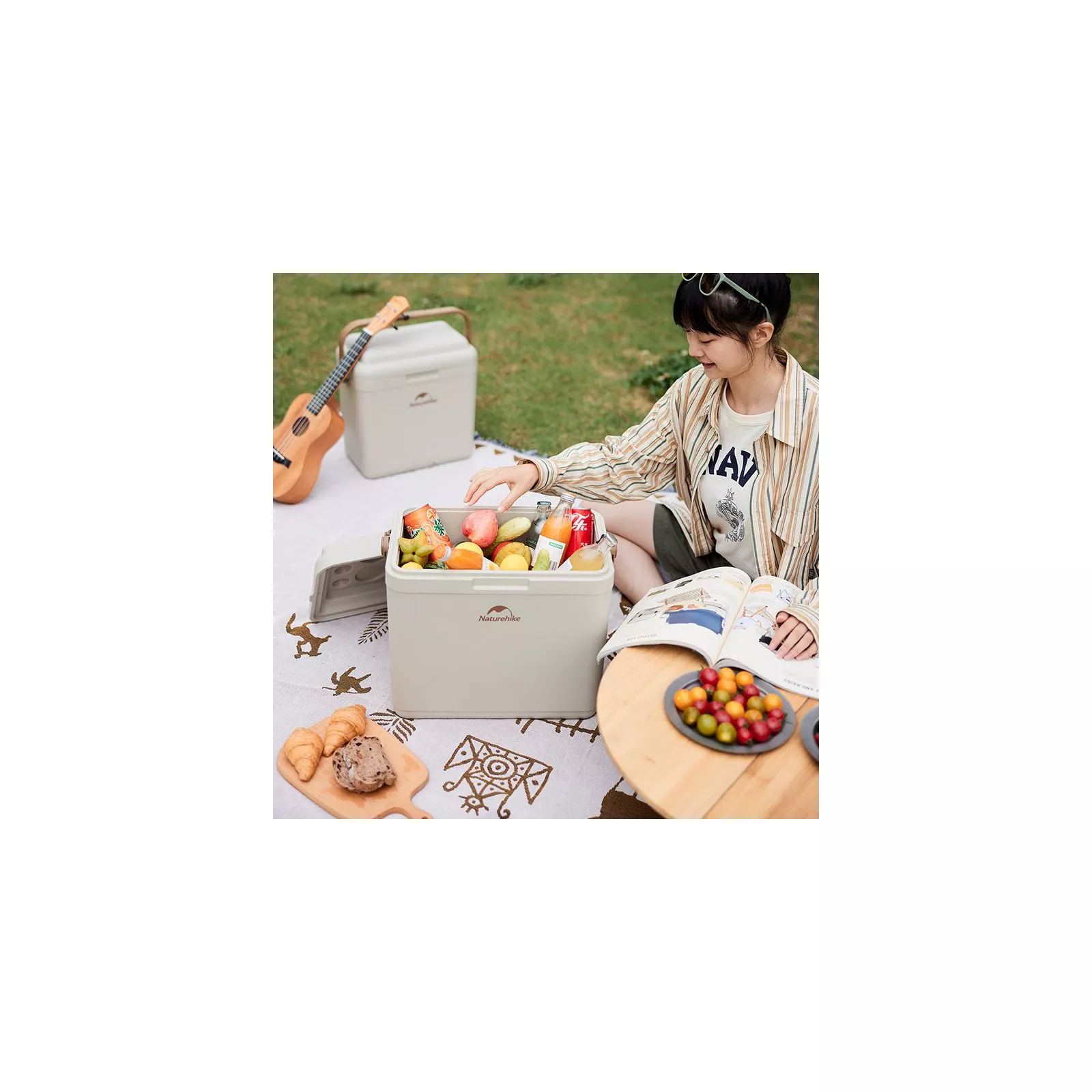 Компактный, вместительный холодильник. За счет наличия откидной ручки удается просто транспортировать или использовать его в качестве столешницы. Ручка для переноски дополнительно уплотнена, имеет закругленные углы, надежно фиксирует крышку возможного открывания. Открыть холодильник можно только в том случае, когда ручка находится спереди.
