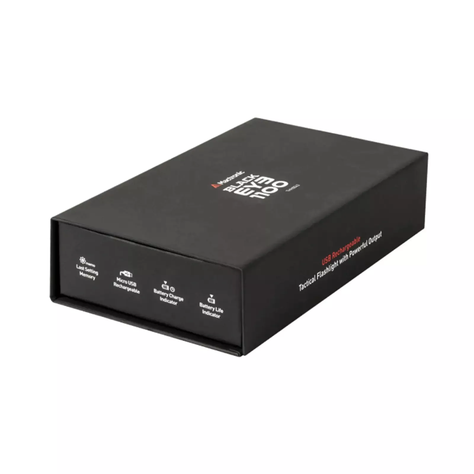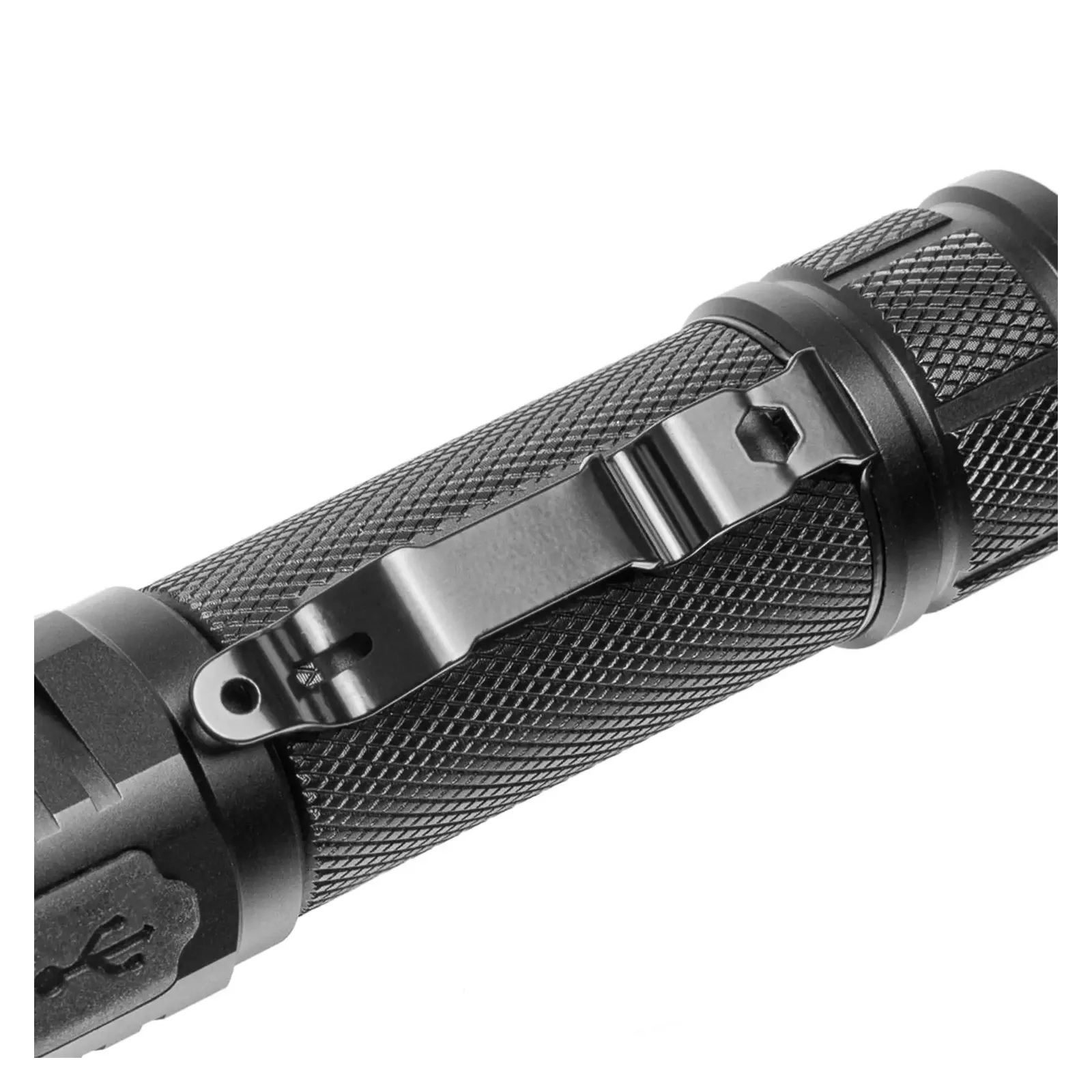 Фонарь укомплектован удобным чехлом с петлей для крепления на ремень, или системой Molle, металлическим D-образным кольцом, для ношения на одежде, кабелем micro USB (50 см) и темляком с логотипом компании.