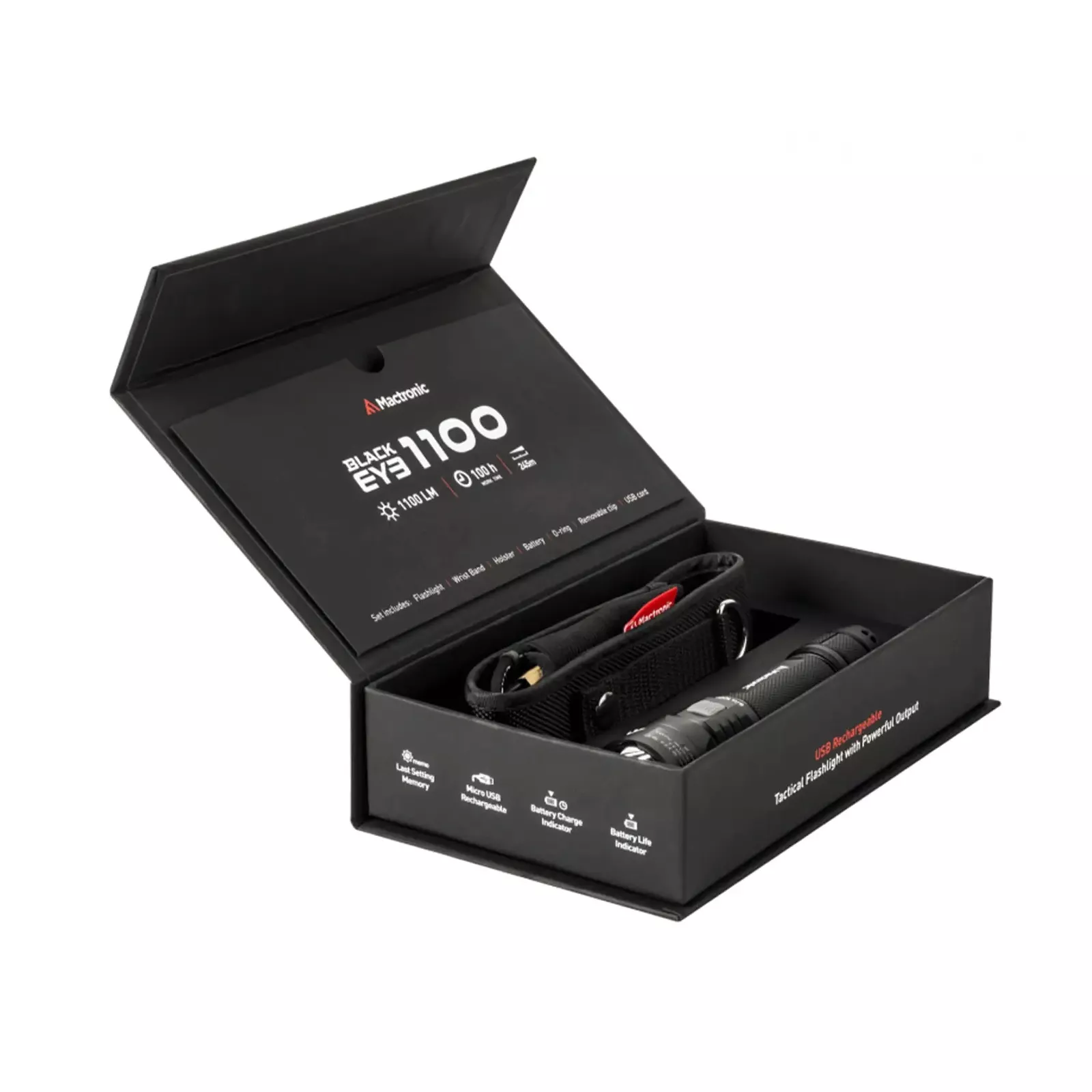 Модель Mactronic Black Eye 1100 имеет все современные защитные системы, которые позволяют уберечь фонарь от короткого замыкания, перегрева, механических повреждений или попадания влаги внутрь. Корпус этой модели, выполненный из анодированного алюминия, обеспечивает влагозащиту по стандарту IPX6 (защиту от водяных потоков или сильных струй по любому направлению) и ударопрочность при падении с высоты до 1 м на бетон.
