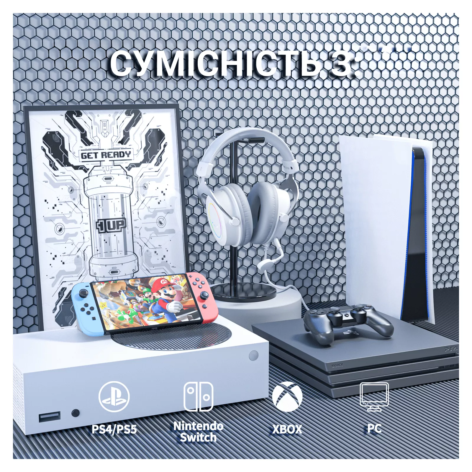 Улучшайте свои игровые настройки с помощью динамической RGB-подсветки на геймерской 3.5-мм гарнитуре. Стильная RGB-подсветка подсвечивает проволочную гарнитуру яркими цветами и создает увлекательную игровую ауру, которая дополняет вашу игровую атмосферу. Общайтесь с товарищами по команде с помощью съемного микрофона. Удобное встроенное управление предоставляет вам легкий доступ к регулировке уровня громкости наушников или включению/выключению микрофона, обеспечивая удобный контроль над игровым звуком. Наслаждайтесь различными возможностями подключения благодаря 3.5-миллиметровому аудиоразъему проводной гарнитуры, что позволяет подключаться к широкому спектру игровых устройств и платформ. Среди них: Nintendo Switch, XBOX, геймпады PS4/PS5, смартфон, планшет, ПК.