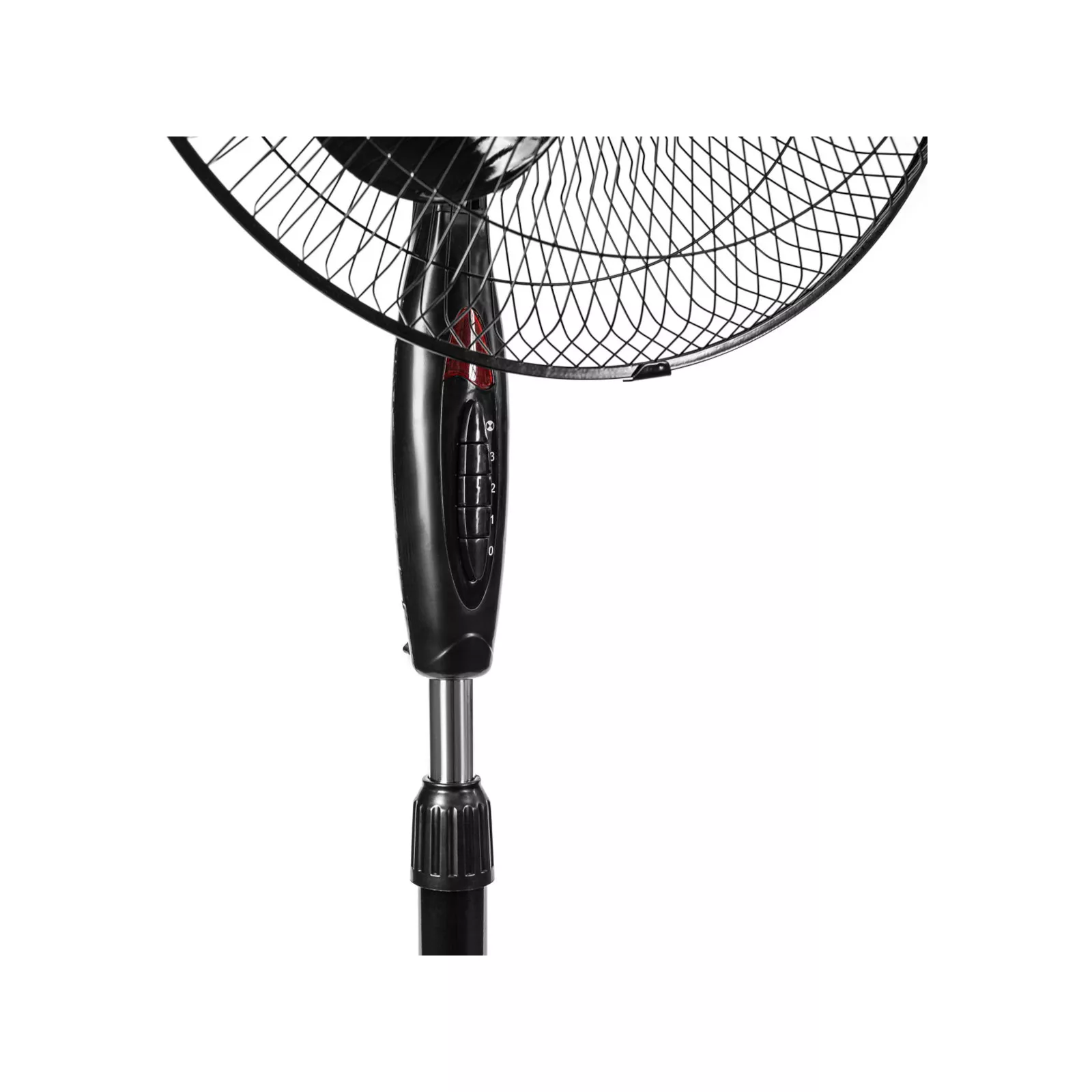 На лицевой стороне вентилятора HFS-1217B расположена кнопочная панель управления со световым индикатором. Интерфейс управления удобен и понятен. 3 скорости вращения позволяют выбрать оптимальную и комфортную для Вас силу обдува. В настройках включена также функция «Автоповорот».