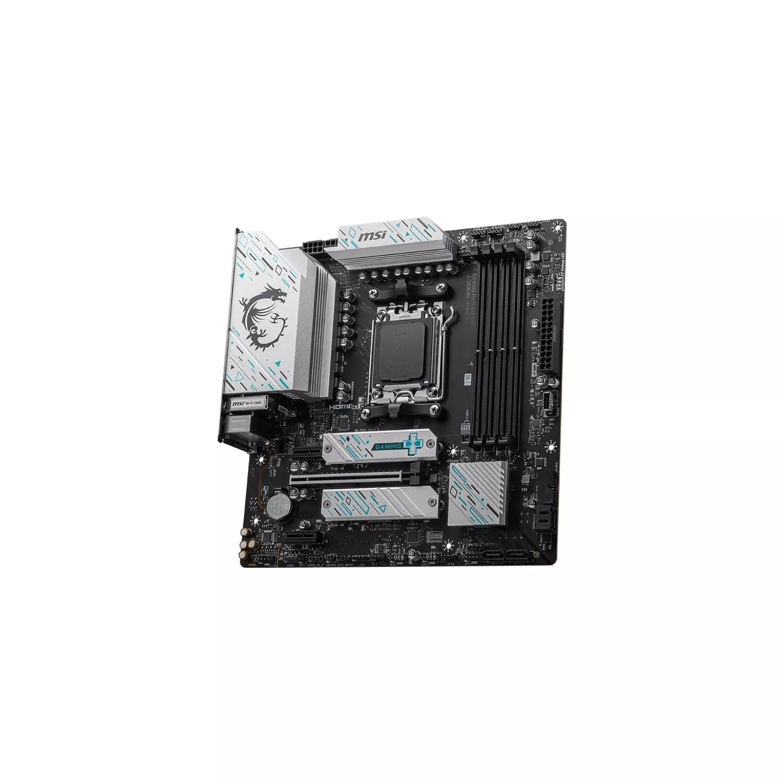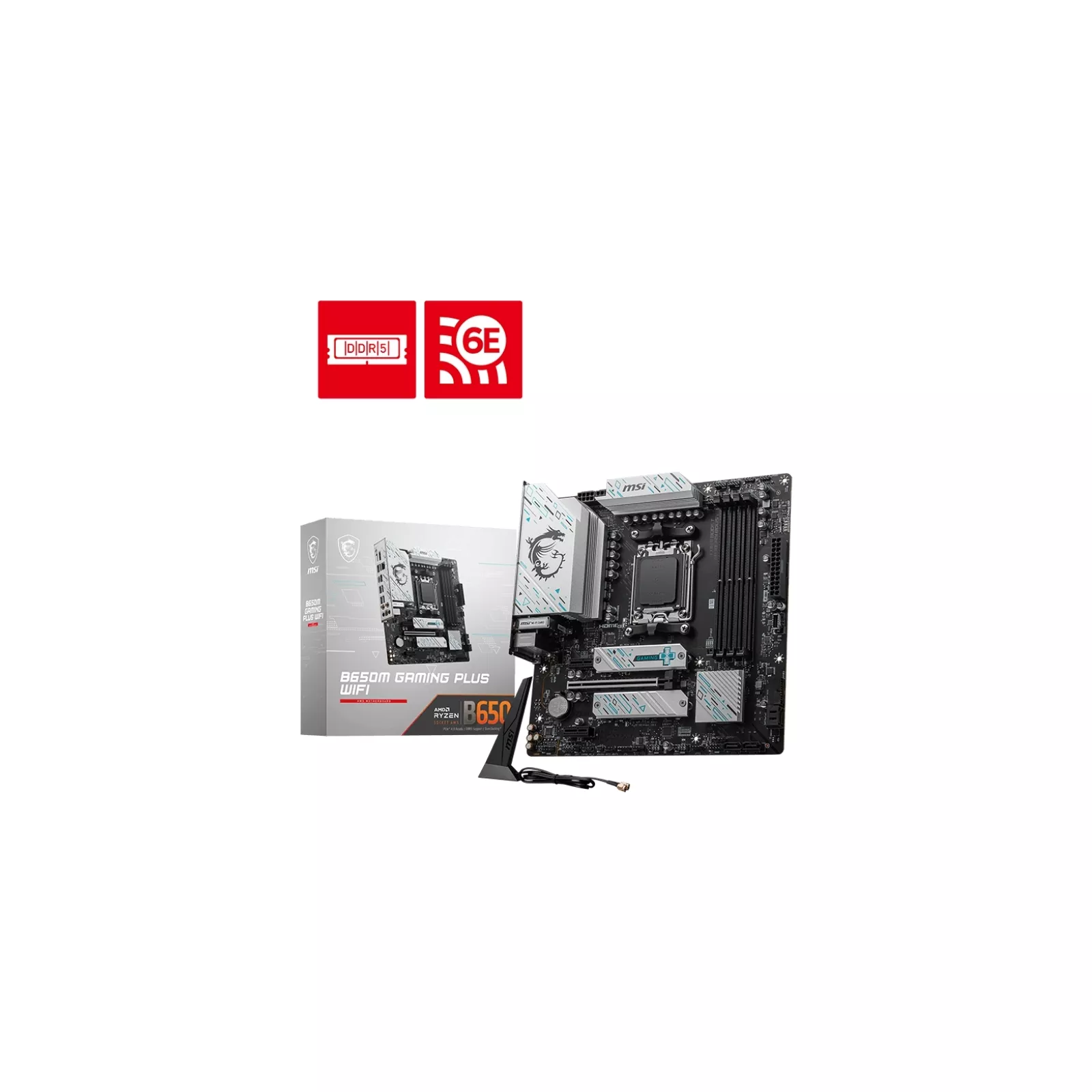 сокет – AM5, чипсет – AMD B650, DDR5, макс. объем оперативной памяти – 256 ГБ, макс. частота оперативной памяти – 7200 MHz, скорость LAN – 2,5 Гбит/с, DisplayPort, HDMI, внутренние – 2 x M.2 2280, 4 x Sata 6.0 Gb/s, Bluetooth 5.3, 2x2 Wi-Fi 6E (802.11 a/b/g/n/ac/ax), Micro-ATX