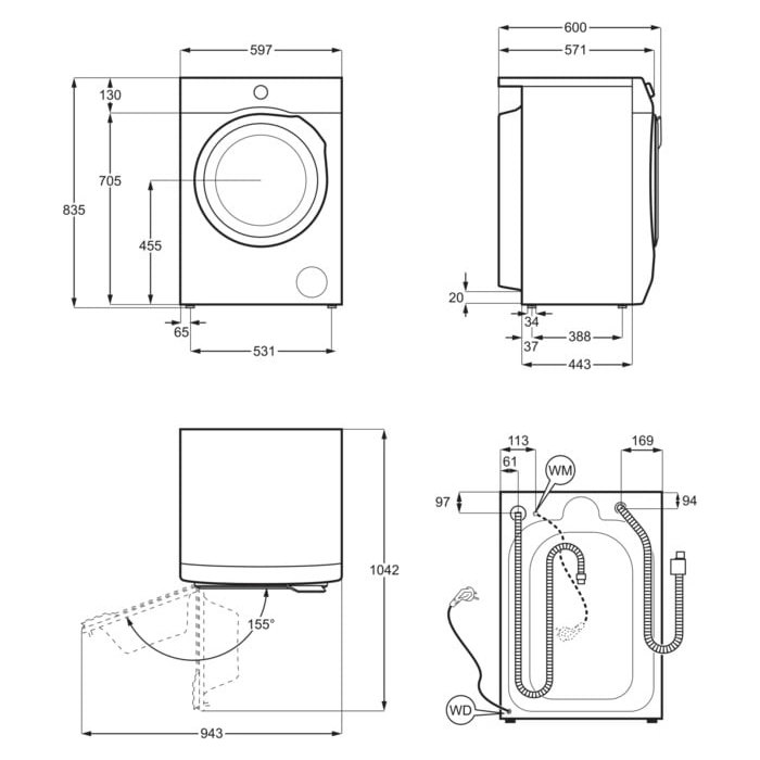 | Функции | выбор количества оборотов отжима, выбор температуры, количество полосканий, ливней, отмена отжима, отсрочка стирки, предварительная стирка, старт/пауза |