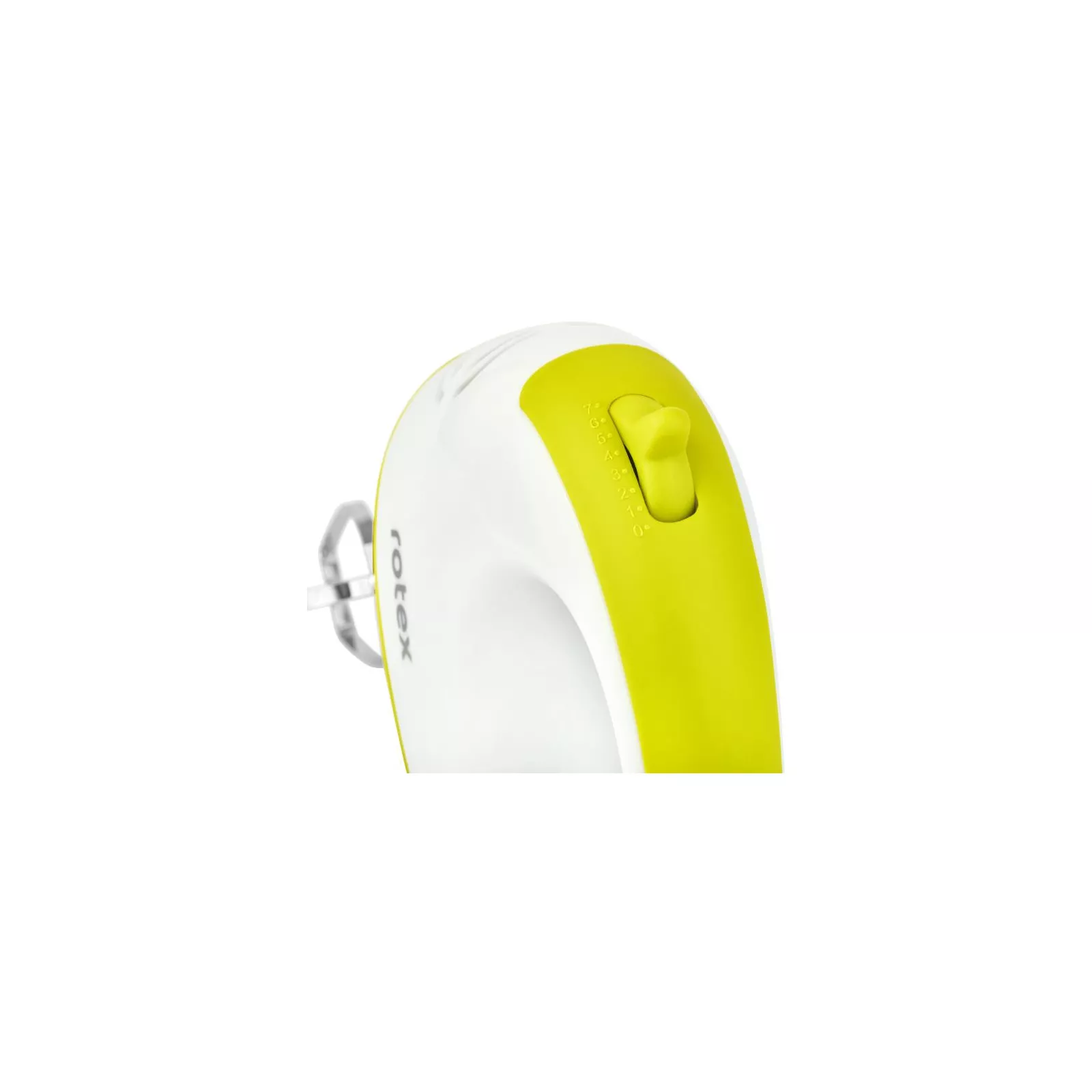 Питание - 220-240В, 50Гц, Мощность 150W. 7 скоростей. Хромированные насадки. 2 венчика для взбивания яиц и кремов. Насадка для теста. Кнопка извлечения насадок.