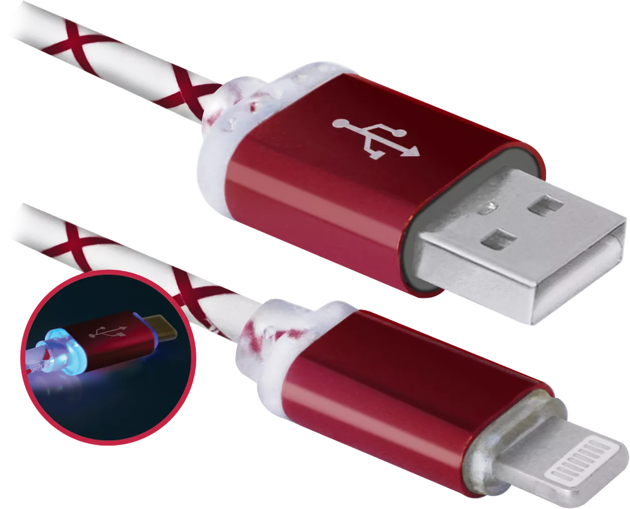 Длина кабеля 1 м. Интерфейс USB 2.0. Разъемы USB 2.0 (AM) - Apple Lightning (M). Цвет Красный