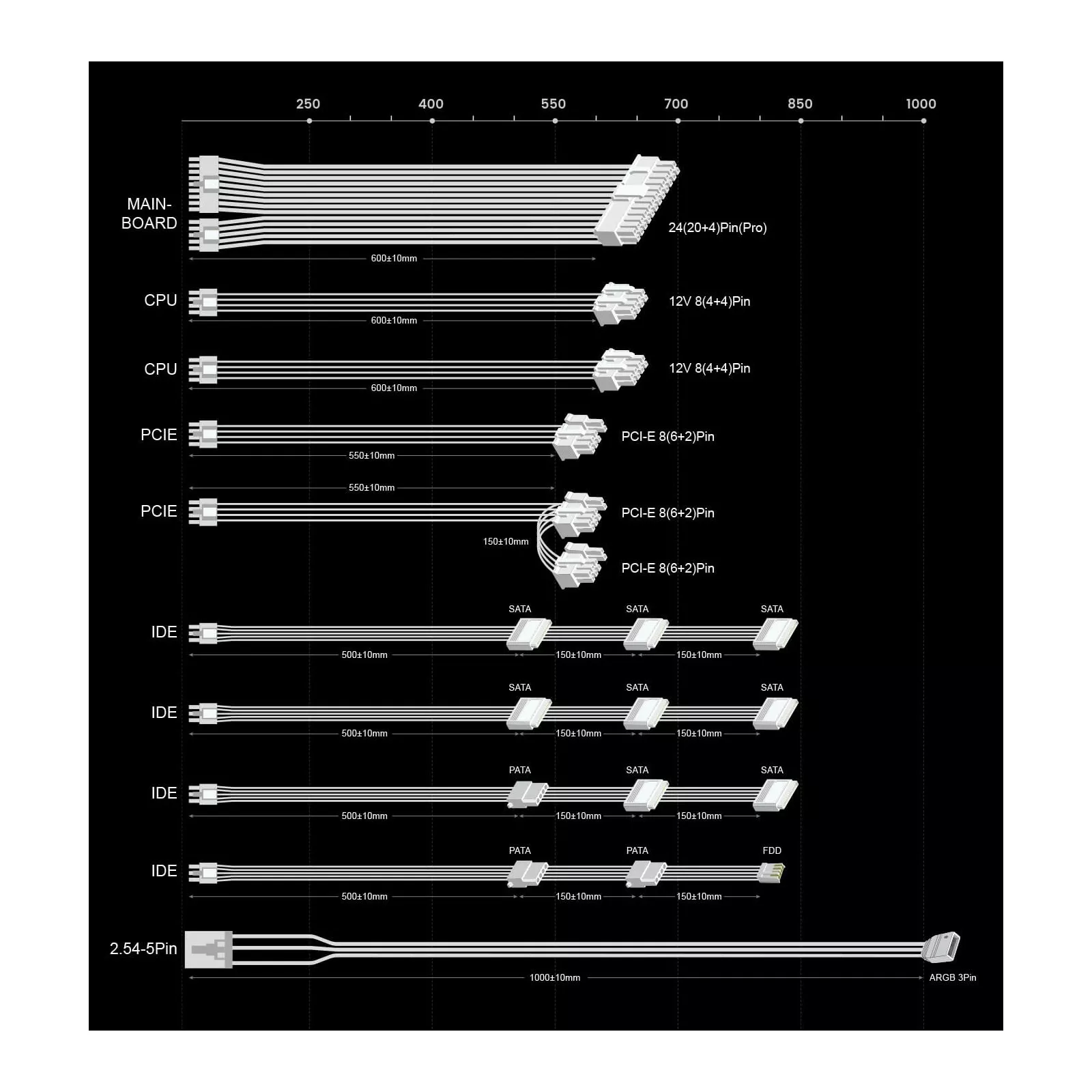 Эта модель относится к полностью модульным блокам питания. Она обеспечит стабильное питание системы без энергопотерь, поскольку сертифицирована по стандарту 80 Plus Gold. Охлаждается с помощью вентилятора 140 мм, который гарантирует надежный отвод тепла и при этом обеспечивает низкий уровень шума. почему будет выполнять и декоративную функцию и придаст сборке цвета. Нажмите переключатель RGB-контроллера, чтобы выбрать желаемый цветовой режим: одноцветный, режим смешивания цветов или мерцающих огней. Подсветка поддерживает синхронизацию с материнскими платами от ASUS, GIGABYTE, MSI и ASRock.