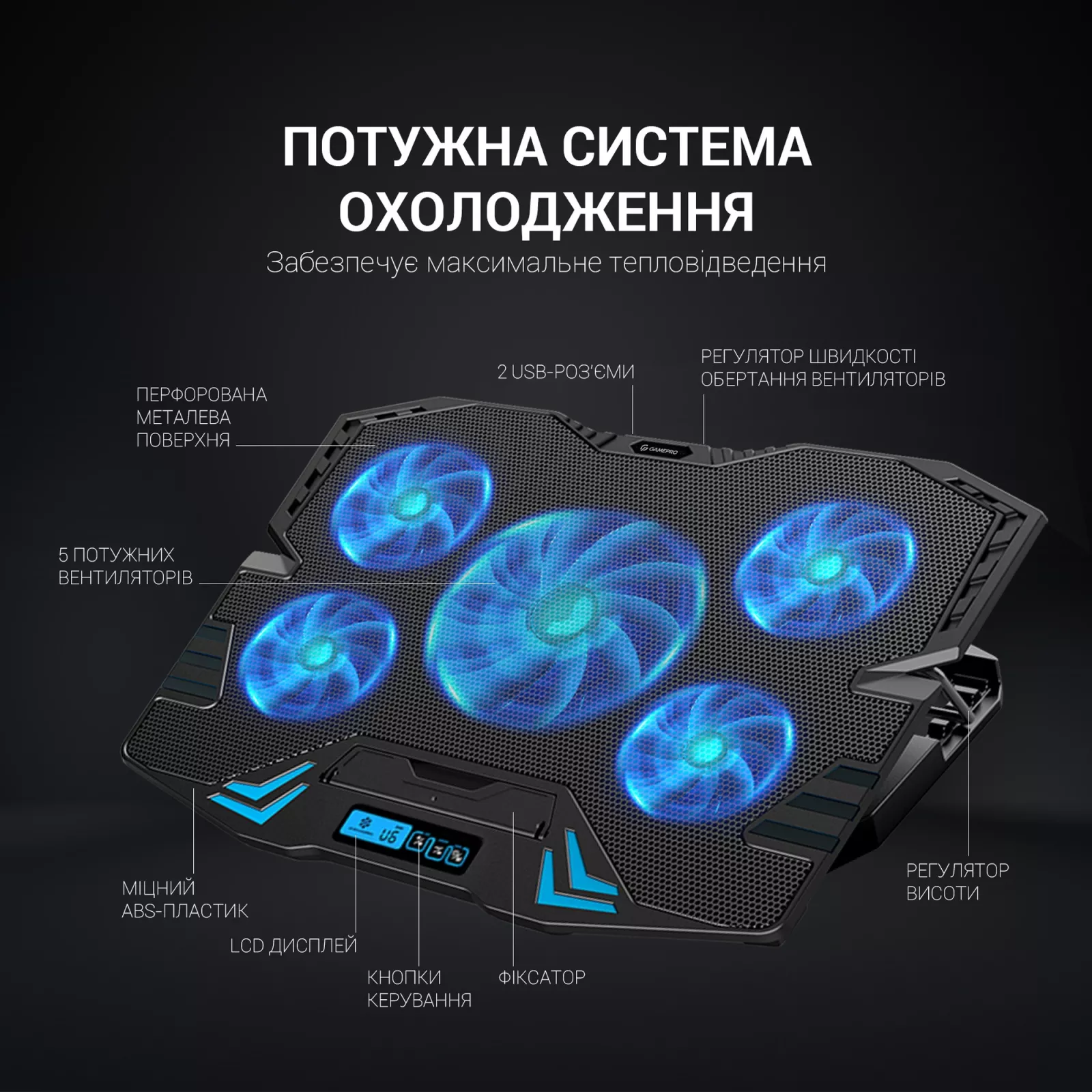 Жизнь современного человека наполнена событиями и разнообразными задачами. И, конечно, сложно представить свой день без использования ноутбука. Чтобы обеспечить ему надлежащее охлаждение и подарить лучшие условия для работы, на помощь приходит охлаждающая подставка для ноутбука. Подставка GamePro CP626 — настоящий герой для вашего гаджета. Большой вентилятор размером 125 х 125 х 15 мм создан, чтобы обеспечить максимальное и в полном объеме эффективное охлаждение. С его скоростью 1400 оборотов в минуту ваш ноутбук почувствует свежесть, необходимую для высокопроизводительной работы.